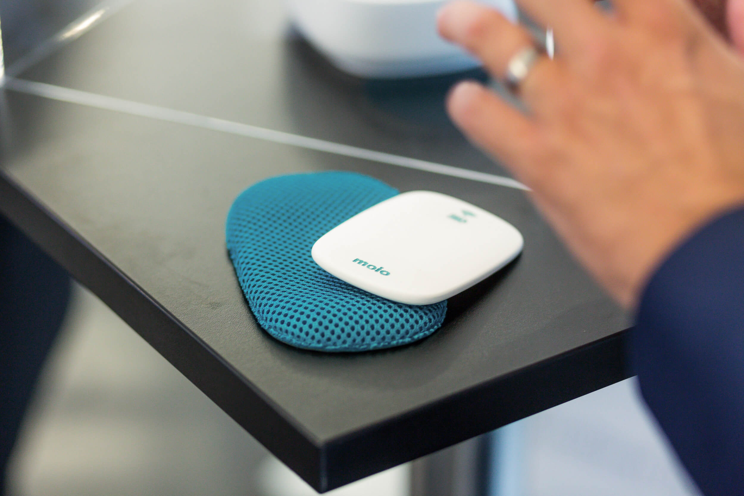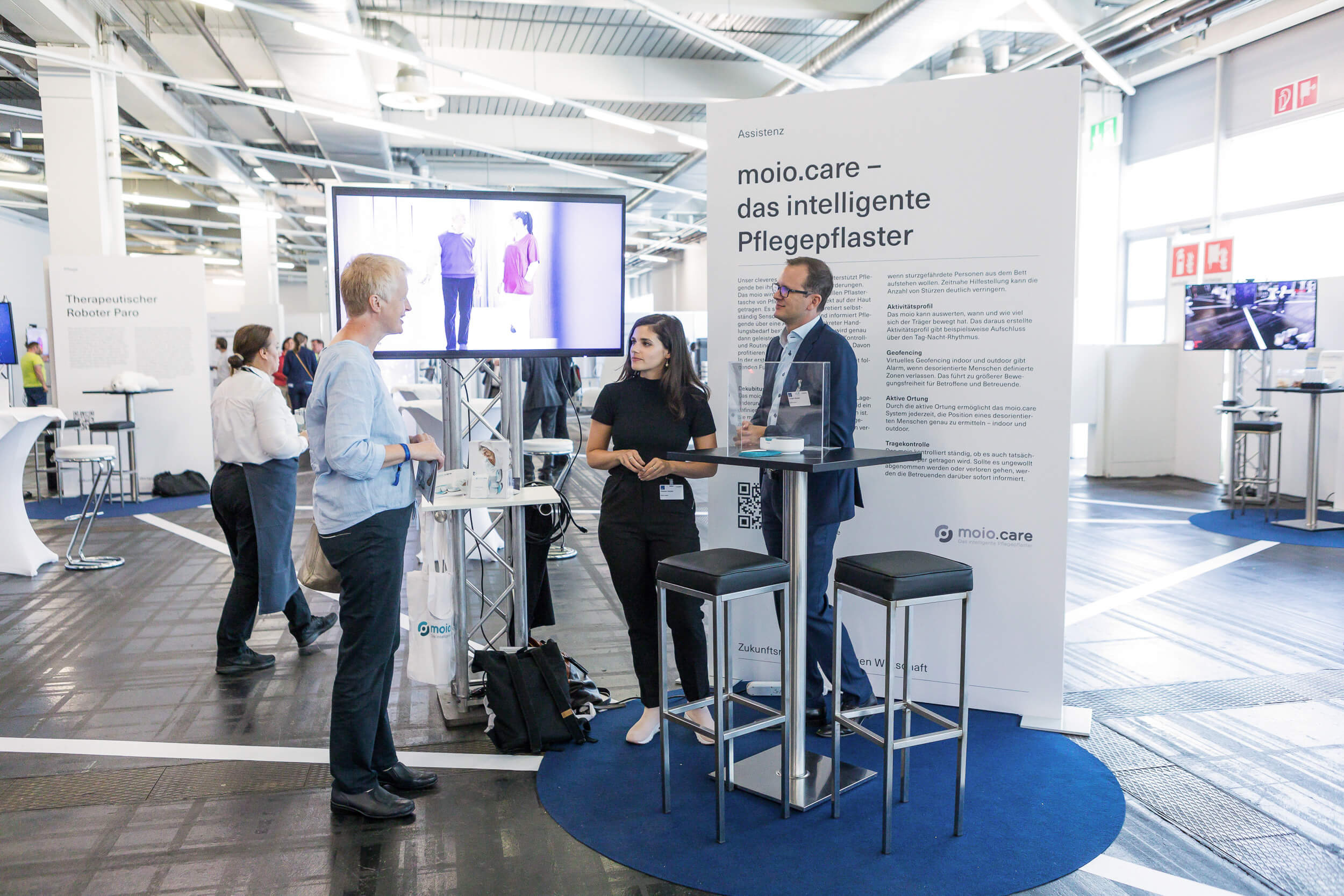 Das clevere TeleCare-System unterstützt Pflegende bei ihren täglichen Herausforderungen. Das moio wird mithilfe einer speziellen Pflastertasche von Pflegebedürftigen direkt auf der Haut getragen. Es sammelt und interpretiert selbstständig Sensorinformationen und informiert Pflegende über eine App, sobald konkreter Handlungsbedarf besteht. Unterstützung wird genau dann geleistet, wenn sie benötigt wird, Kontroll- und Routineaufgaben werden vereinfacht. Davon profitieren Pflegende und Gepflegte. In der ersten Entwicklungsstufe soll moio mit folgenden Funktionen ausgestattet sein: