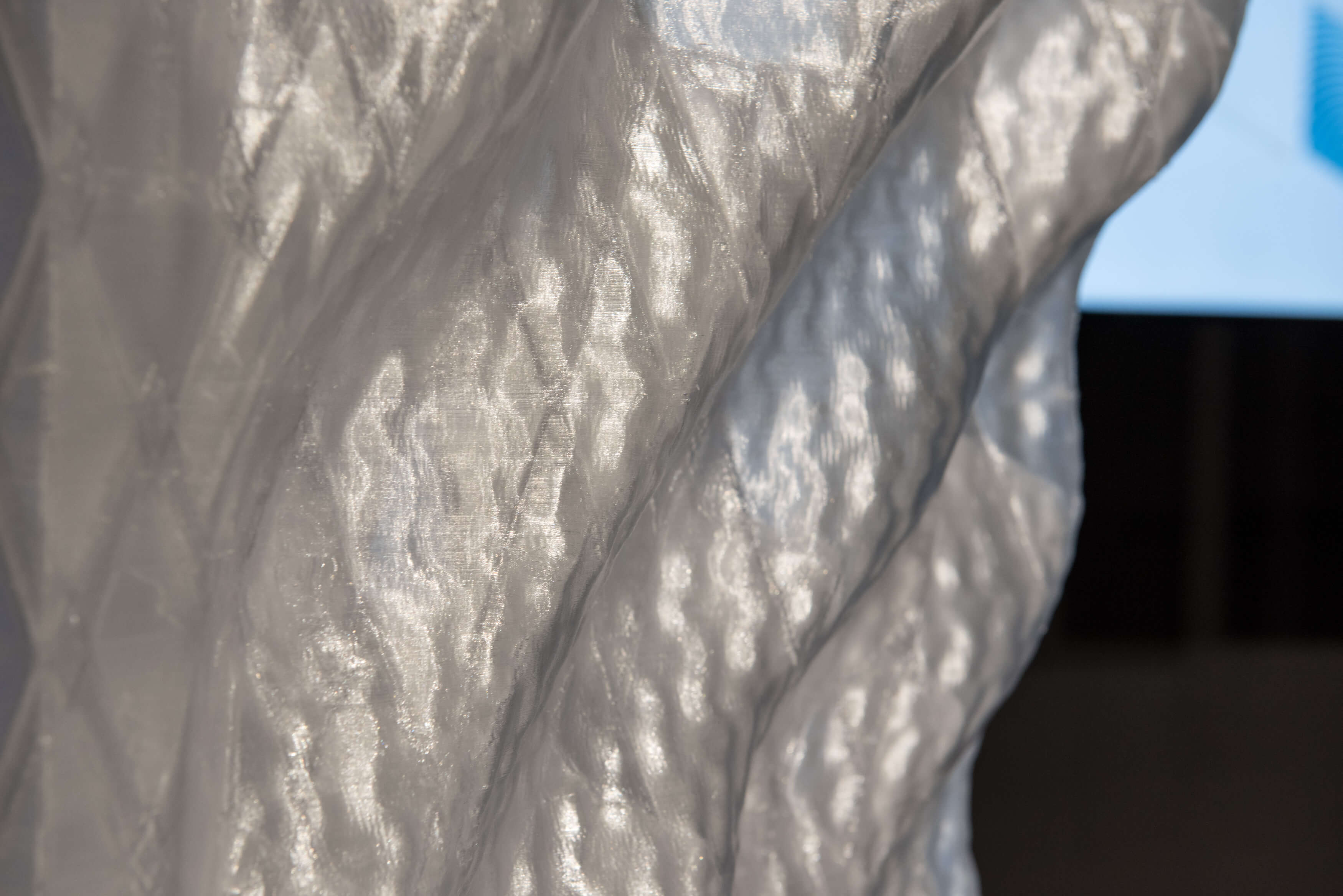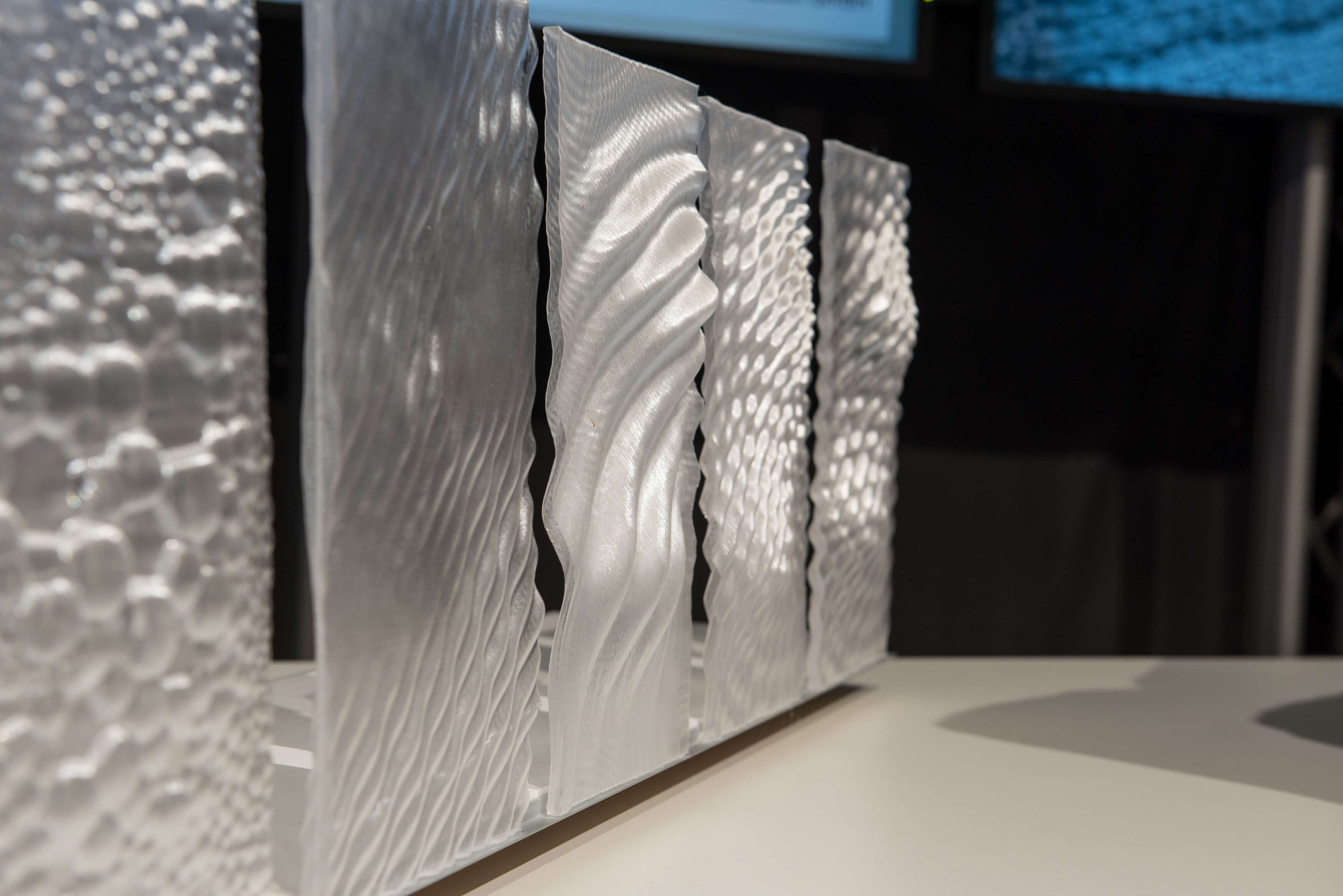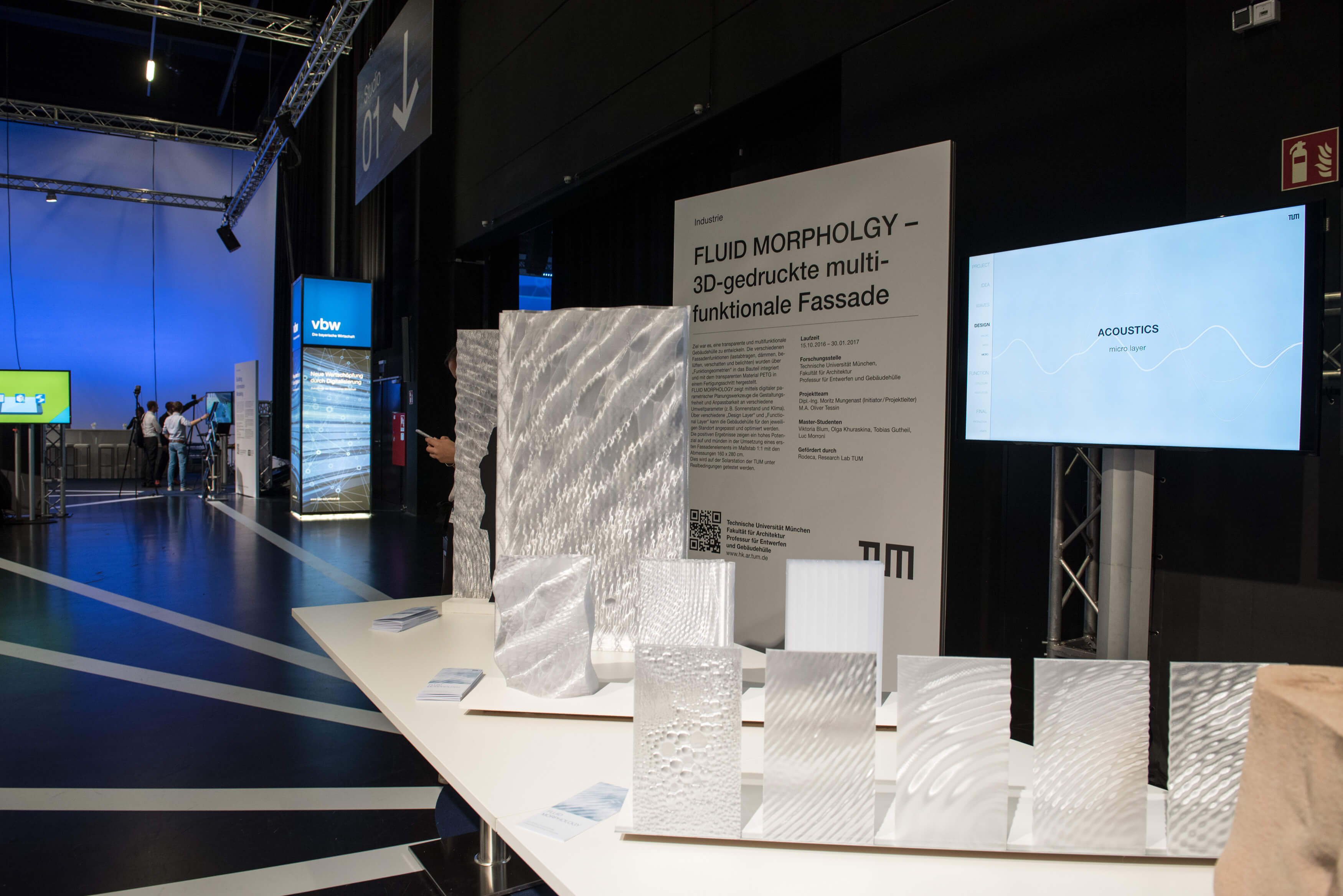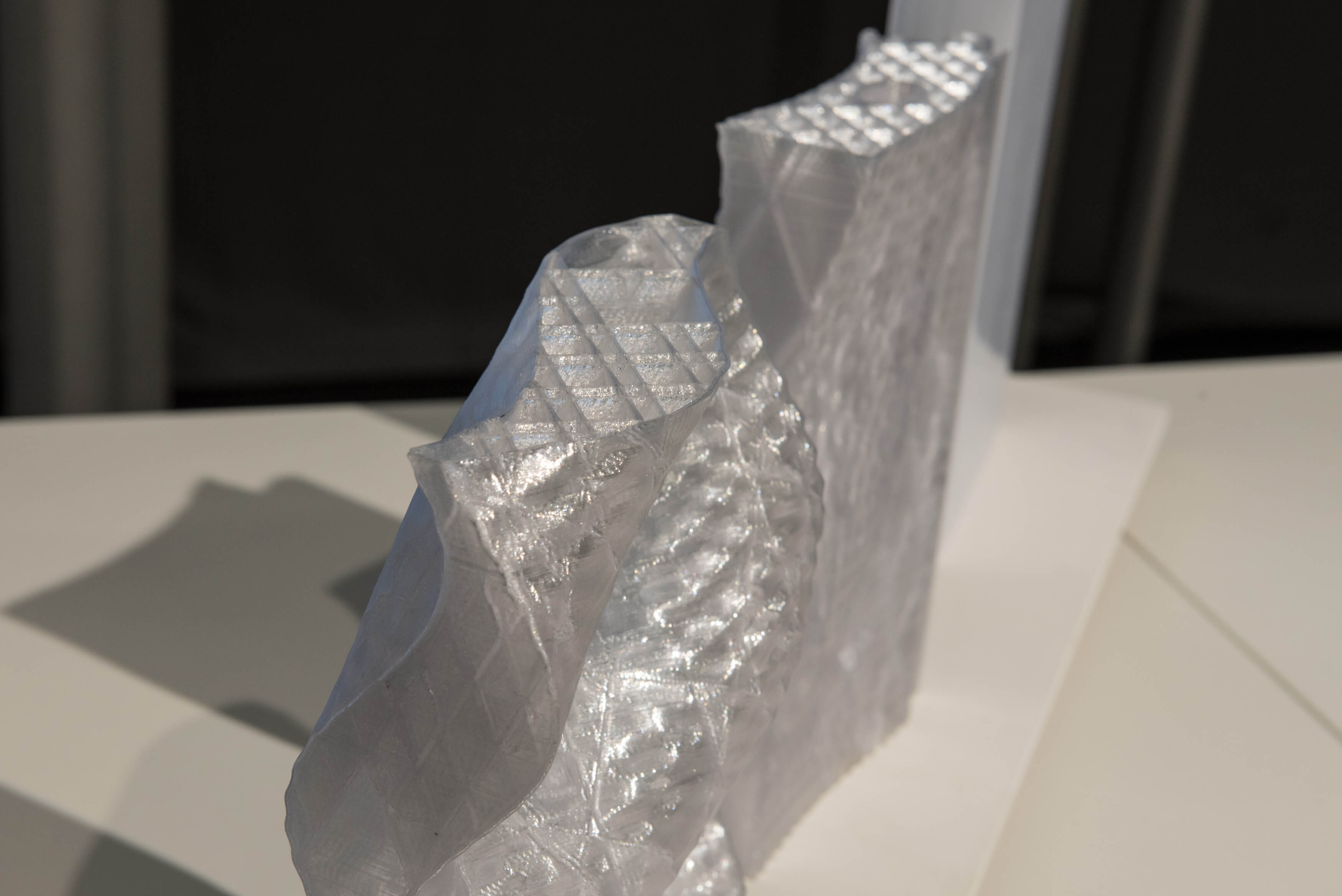 Ziel war es eine transparente und multifunktionale Gebäudehülle zu entwickeln. Die verschiedenen Fassadenfunktionen (lastabtragen, dämmen, belüften, verschatten und belichten) wurden über „Funktiongeometrien“ in das Bauteil integriert und mit dem transparenten Material PETG in einem Fertigungsschritt hergestellt.
