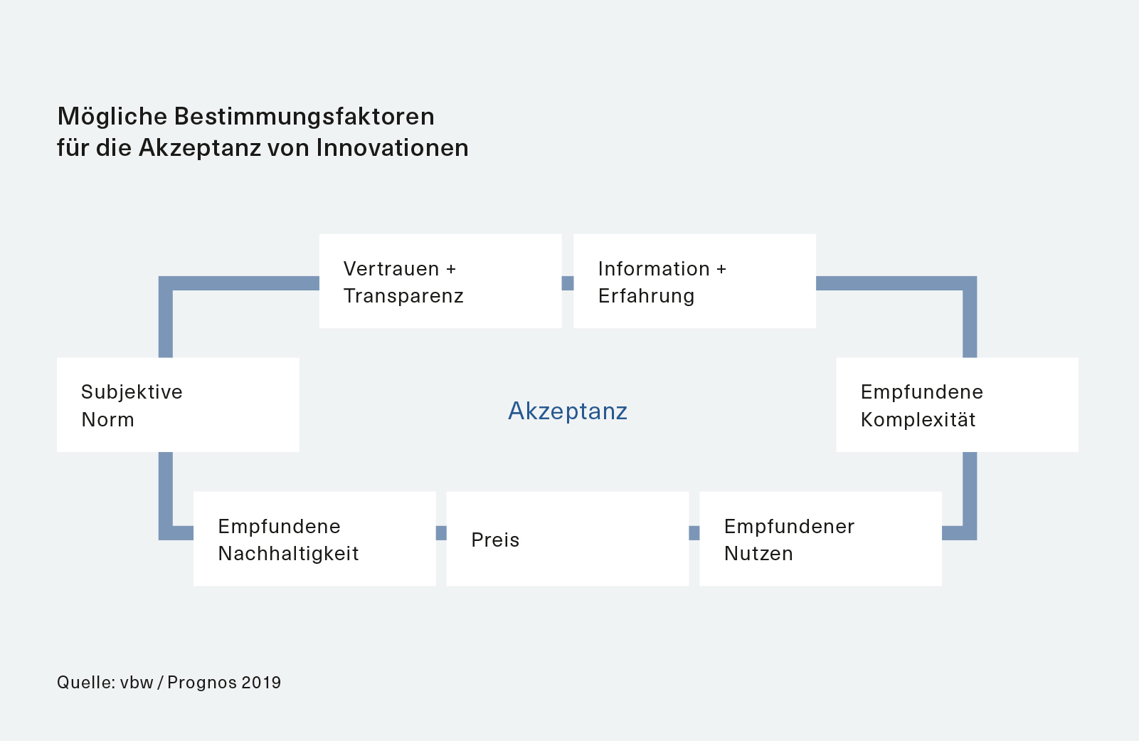 Eine Technologie oder Innovation ist nur dann erfolgreich, wenn sie von einer Gesellschaft akzeptiert wird. Dies hat einen wesentlichen Einfluss auf die Nachfrage und damit auf die Absatzmöglichkeiten von neuen Produkten oder auch Geschäftsmodellen. Die Akzeptanz wird dabei beeinflusst