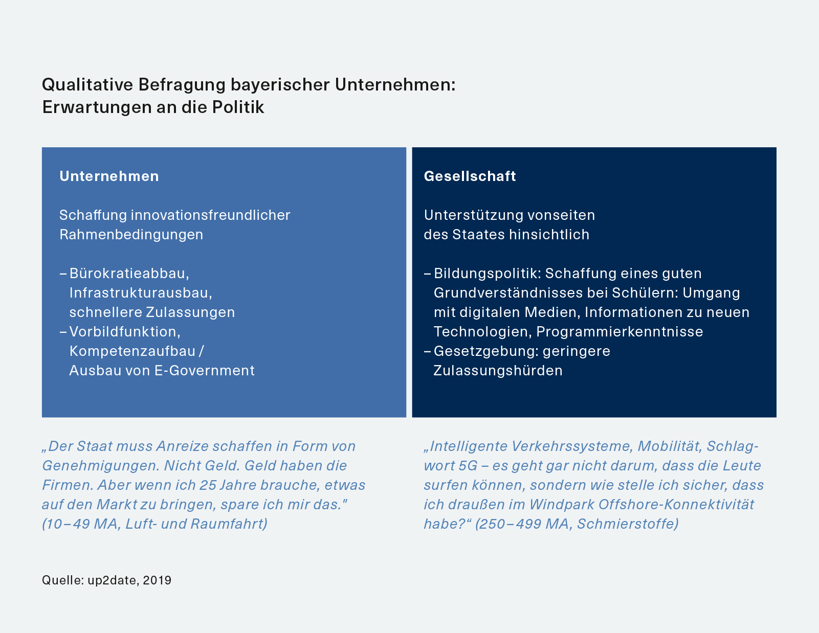 Von der Politik wird vor allem die Schaffung innovationsfreundlicher Rahmenbedingungen sowie eine zielgerichtete Bildungspolitik erwartet (vgl. Abbildung).