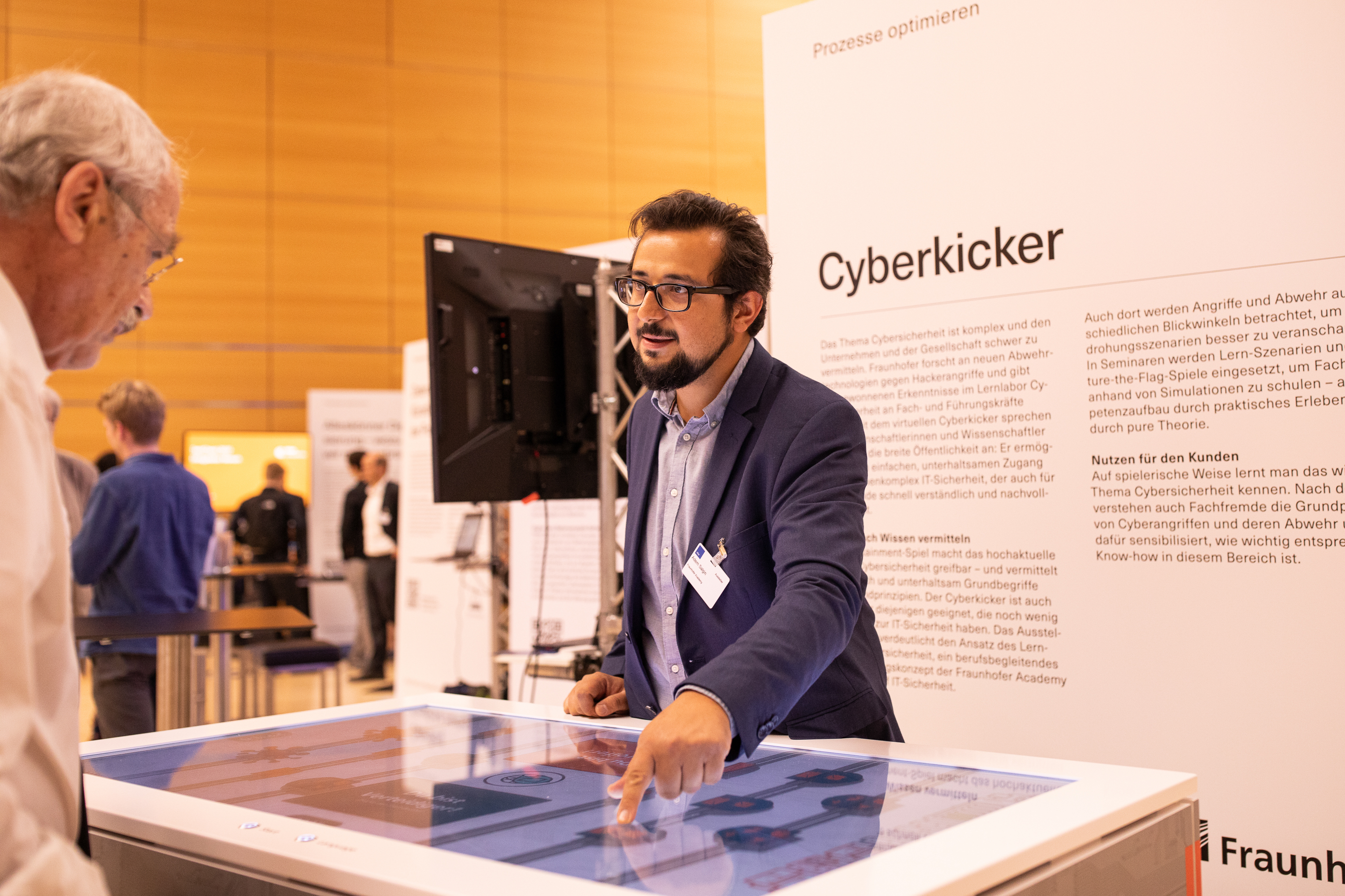 Das Thema Cybersicherheit ist komplex und den Unternehmen und der Gesellschaft schwer zu vermitteln. Fraunhofer forscht an neuen Abwehrtechnologien gegen Hackerangriffe und gibt die gewonnenen Erkenntnisse im Lernlabor Cybersicherheit an Fach- und Führungskräfte weiter. Mit dem virtuellen Cyberkicker sprechen die Wissenschaftlerinnen und Wissenschaftler jetzt auch die breite Öffentlichkeit an: Er ermöglicht einen einfachen, unterhaltsamen Zugang zum Themenkomplex IT-Sicherheit, der auch für Fachfremde schnell verständlich und nachvollziehbar ist.