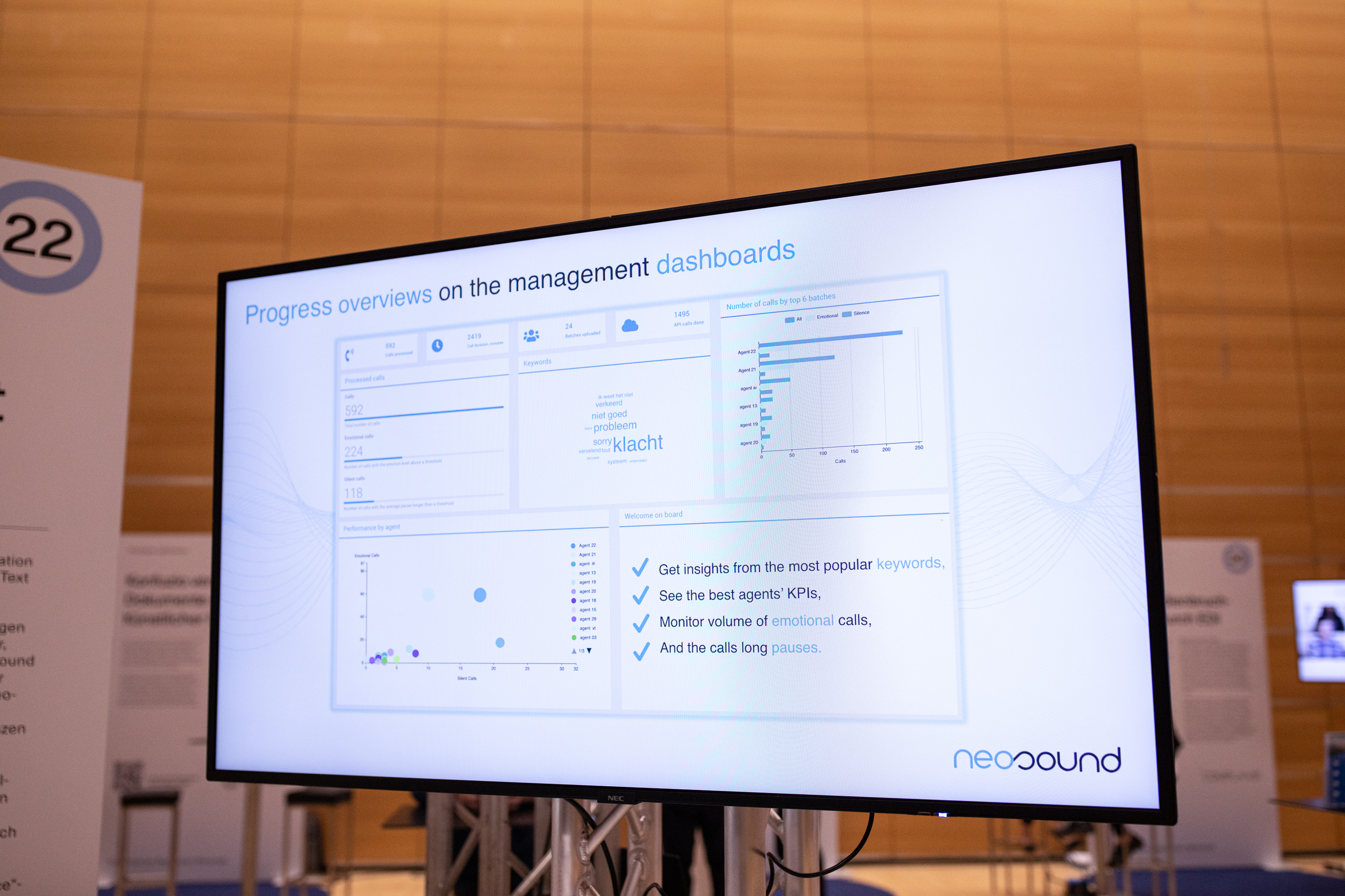 Mit NeoSound können Qualitätsmanager von Callcentern aus Tausenden von Anrufaufzeichnungen mithilfe verschiedener Kriterien wie Emotionen, Pausenintervallen und Schlüsselphrasen die aufmerksamkeitsstärksten Anrufe finden und bearbeiten. Dabei bietet NeoSound eine einzigartige Kombination aus semantischer Analyse von Sprache zu Text und akustischer Analyse der Intonation.