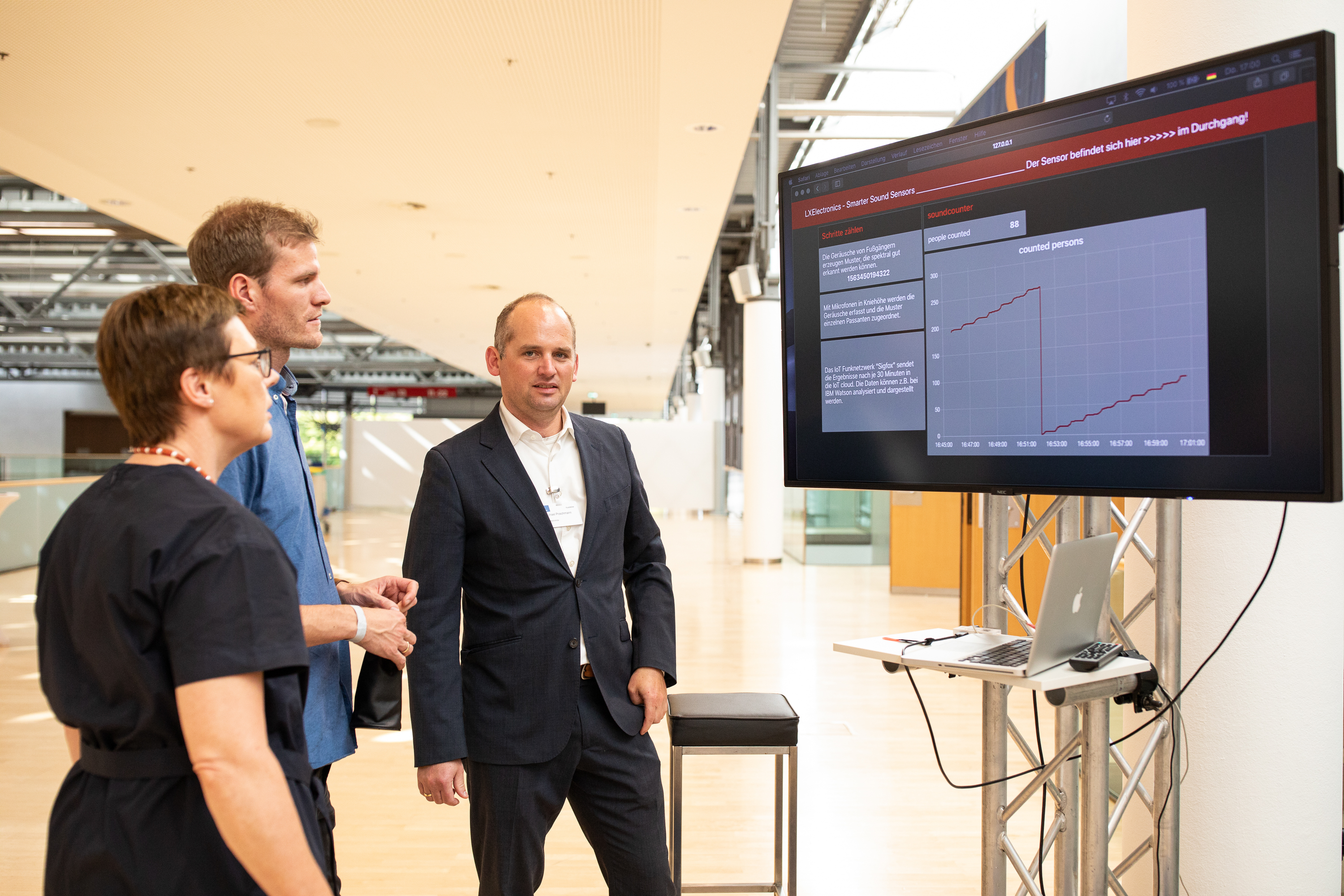 Jeder Fußgänger erzeugt Geräusche, die bodennah aufgenommen werden. Diese Geräuschkulisse wird von einem smarten SoundCounter-Sensor erfasst und nach ca. 7 Sekunden ausgewertet – gleichmäßige Schrittfolgen werden je einer Person zugeordnet. Die Anzahl der Passanten wird alle 30 Minuten übermittelt.