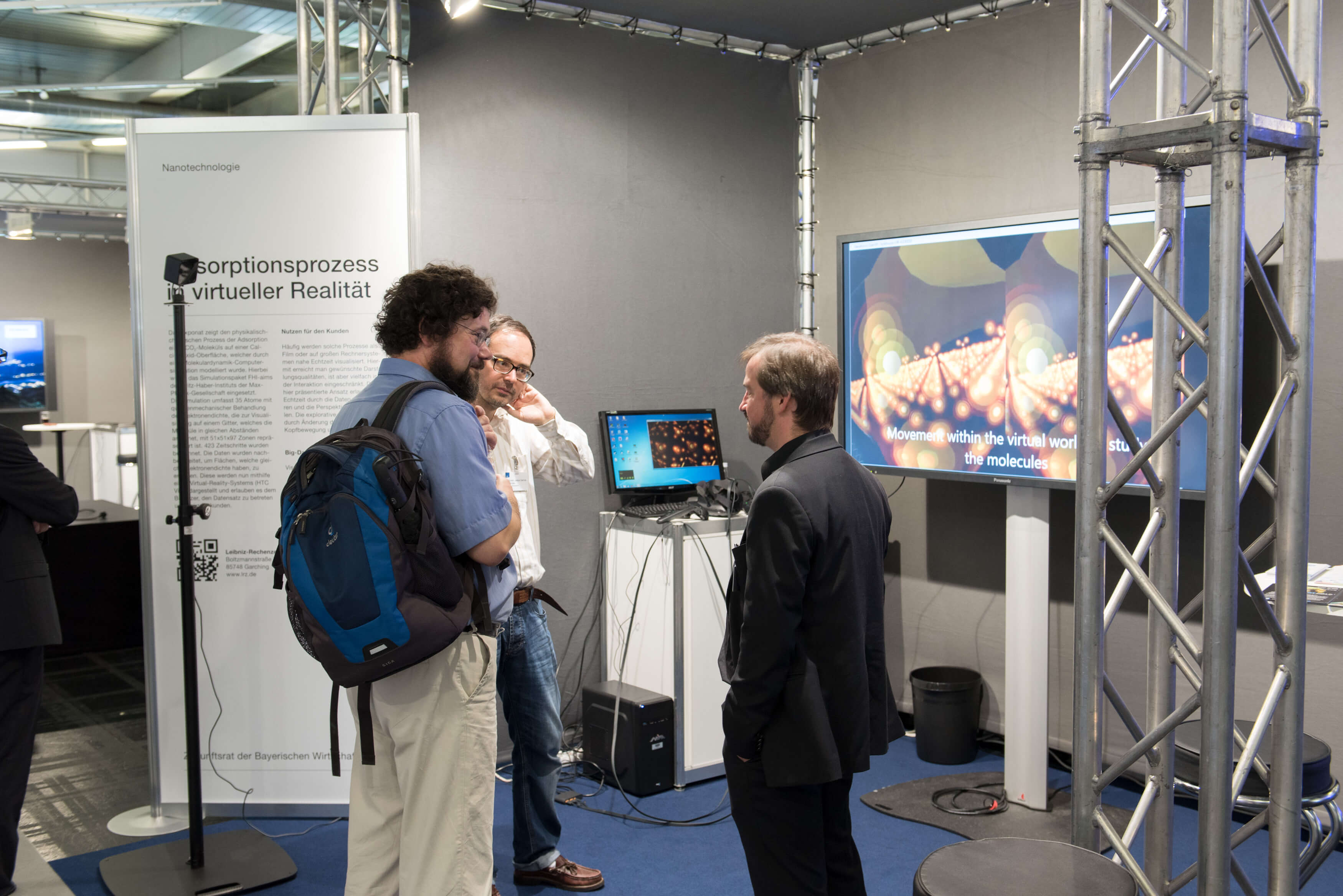 Die Simulation umfasst 35 Atome mit quantenmechanischer Behandlung der Elektronendichte, die zur Visualisierung auf einem Gitter, welches die Moleküle in gleichen Abständen anordnet, mit 51x51x97 Zonen repräsentiert ist. 423 Zeitschritte wurden berechnet. Die Daten wurden nachbearbeitet, um Flächen, welche gleiche Elektronendichte haben, zu erstellen. Diese werden nun mit Hilfe eines Virtual Reality Systems (HTC Vive) dargestellt und erlauben es dem Benutzer, den Datensatz zu betreten und frei zu erkunden.