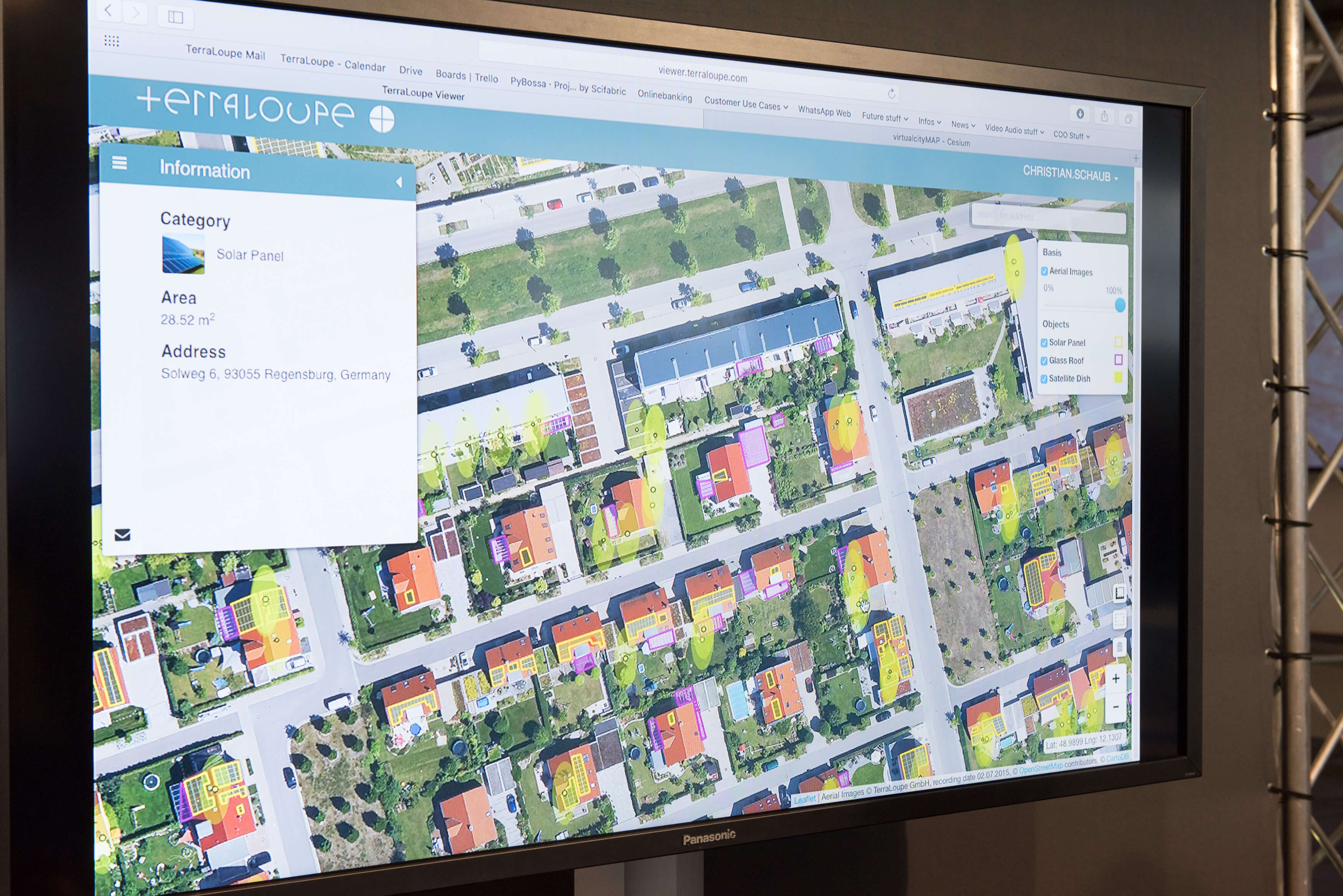 TerraLoupe analysiert Luftbilddaten großer Landstriche mittels künstlicher Intelligenz. Die Nutzung von Deep-Learning-Verfahren ermöglicht es, nun auch relativ kleine Objekte wie etwa Dachfenster oder Straßenschilder in großen Flächen automatisch zu erkennen. Es entsteht eine Plattform zur Digitalisierung der Außenwelt, welche die erkannten Objekte georeferenziert und perspektivisch mit weiteren Informationen zusammenführen kann. Kunden aus unterschiedlichen Branchen können die Daten mit ihren Systemen verbinden oder mittels des dargestellten Online-Viewers analysieren.
