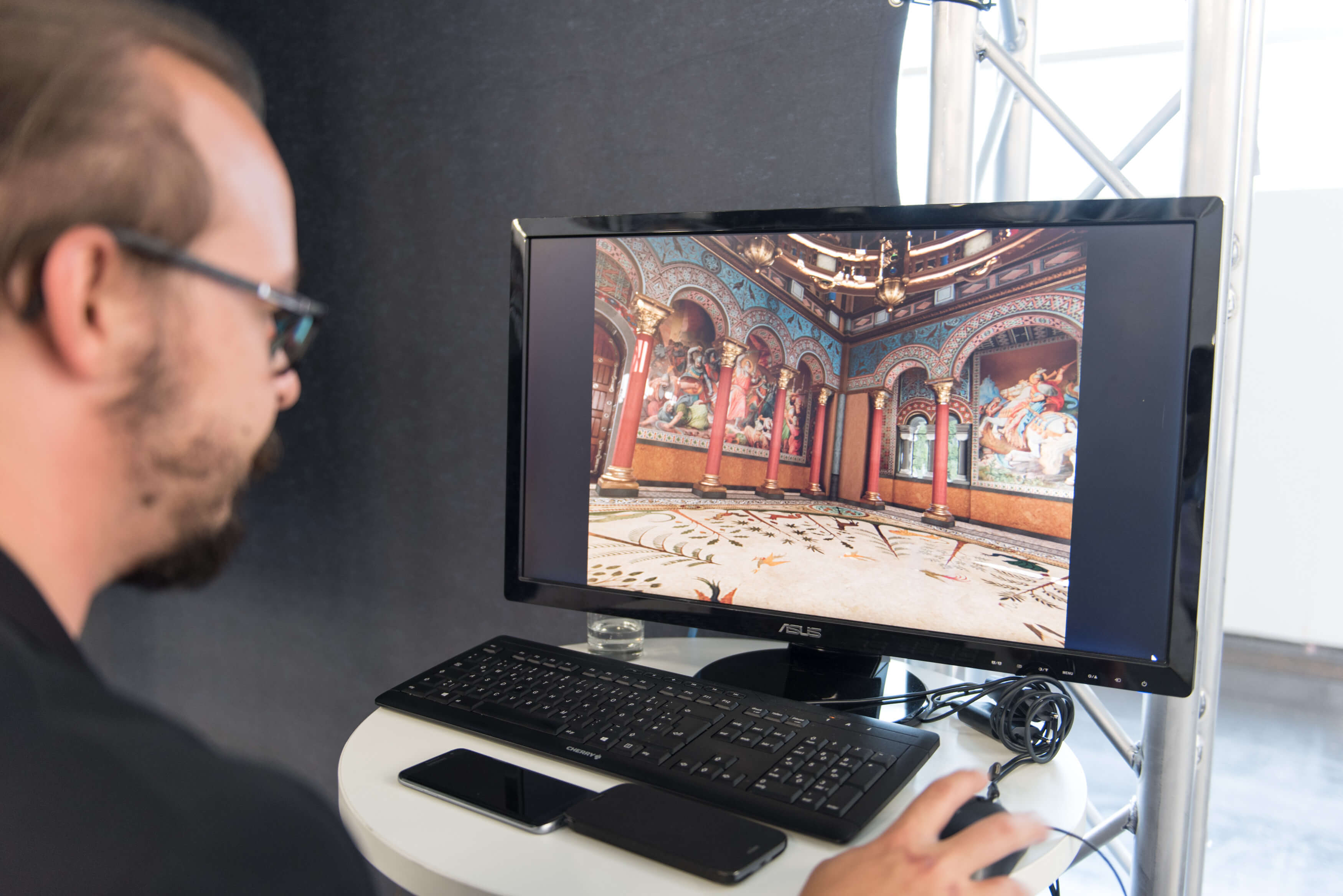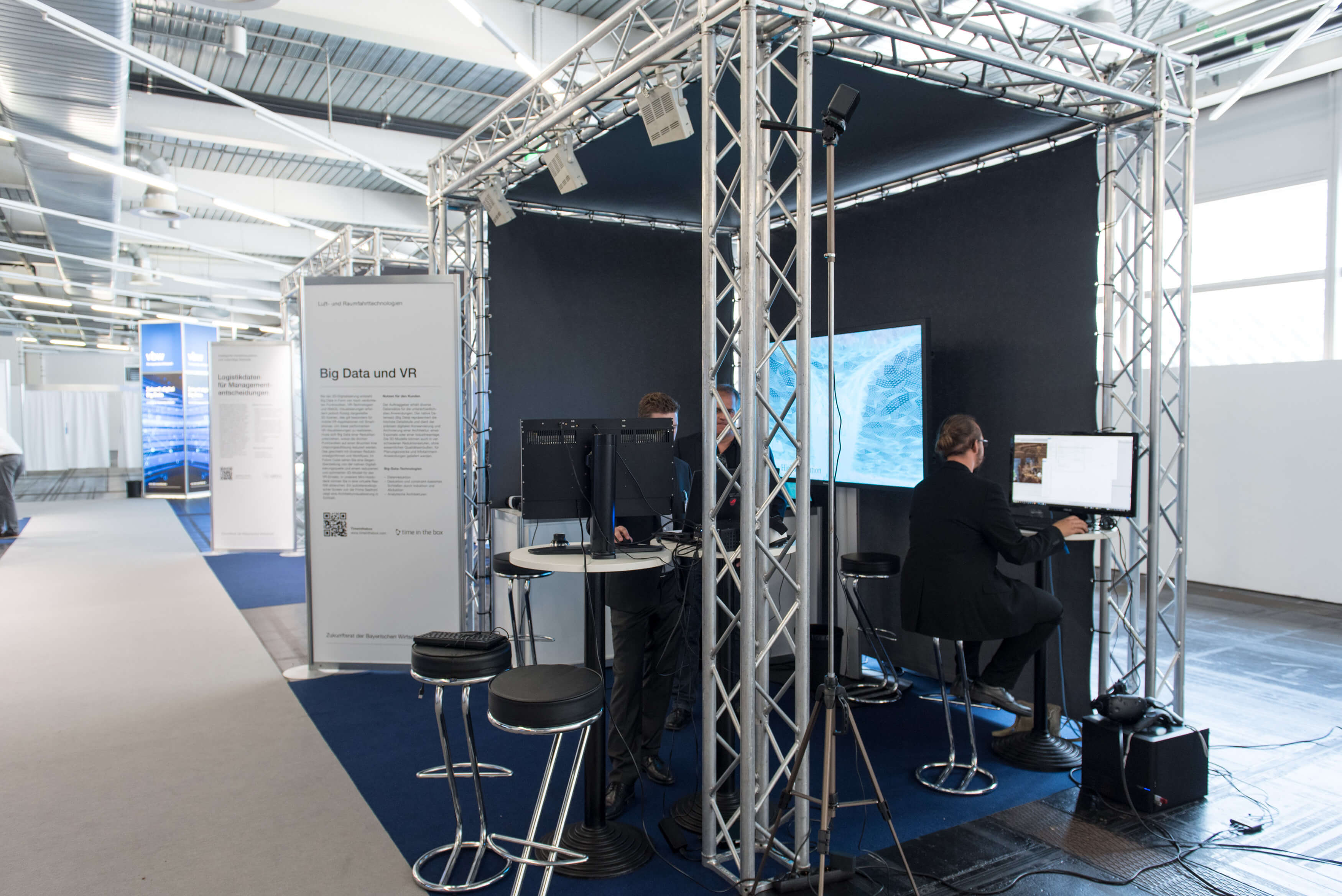 Bei der 3D-Digitalisierung entsteht Big Data in Form von hoch verdichteten Punktwolken. VR-Technologien und WebGL-Visualisierungen erfordern jedoch flüssig dargestellte 3D-Szenen, das gilt besonders für mobile VR-Applikationen mit Smartphones. Um diese performanten VR-Visualisierungen zu realisieren, muss sich Big Data einer Reduktion unterziehen, wobei die dichten Punktwolken auf einen Bruchteil ihrer Ursprungsauflösung reduziert werden. Das geschieht mit diversen Reduktionsalgorithmen und Workflows. Im Future Cube sehen Sie eine Gegenüberstellung von der nativen Digitalisierungsquelle und einem reduzierten und optimierten 3D-Modell für den VR-Einsatz. In unserem Mini-Holdo- deck können Sie in eine virtuelle Realität abtauchen. Ein autostereoskopischer Screen von der Firma Seefront zeigt eine Architekturvisualisierung in Echtzeit.