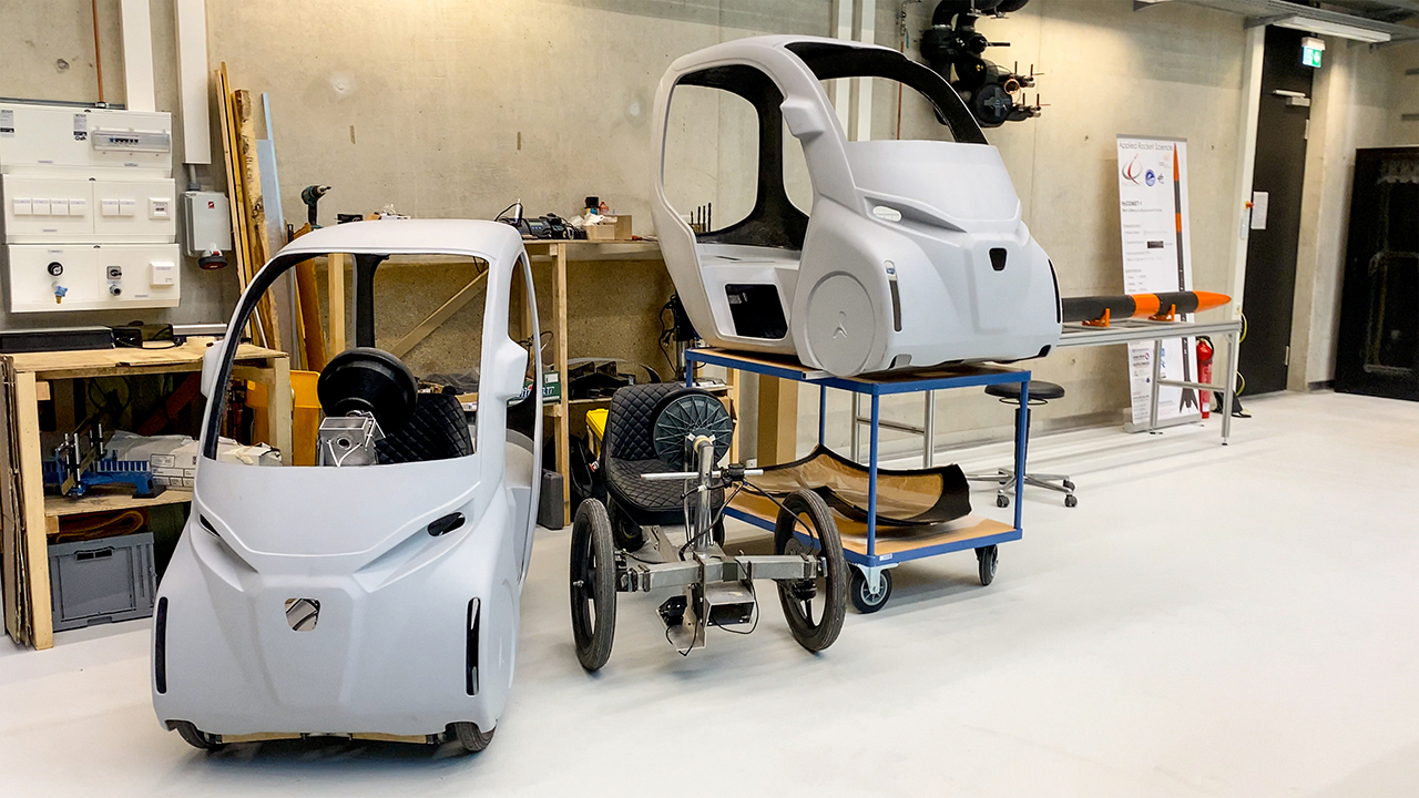 Der Hopper kombiniert die Eigenschaften von Auto und Fahrrad. Mit seinem autoähnlichen Design, den Beifahrersitzen, Kofferraum und Wetterschutz ist er das perfekte Fahrzeug für die alltägliche Mobilität im urbanen Raum. Die Hinterradlenkung und die kompakte Größe ermöglichen eine schnelle Fortbewegung und eine hohe Manövrierfähigkeit in engen Stadtgebieten.