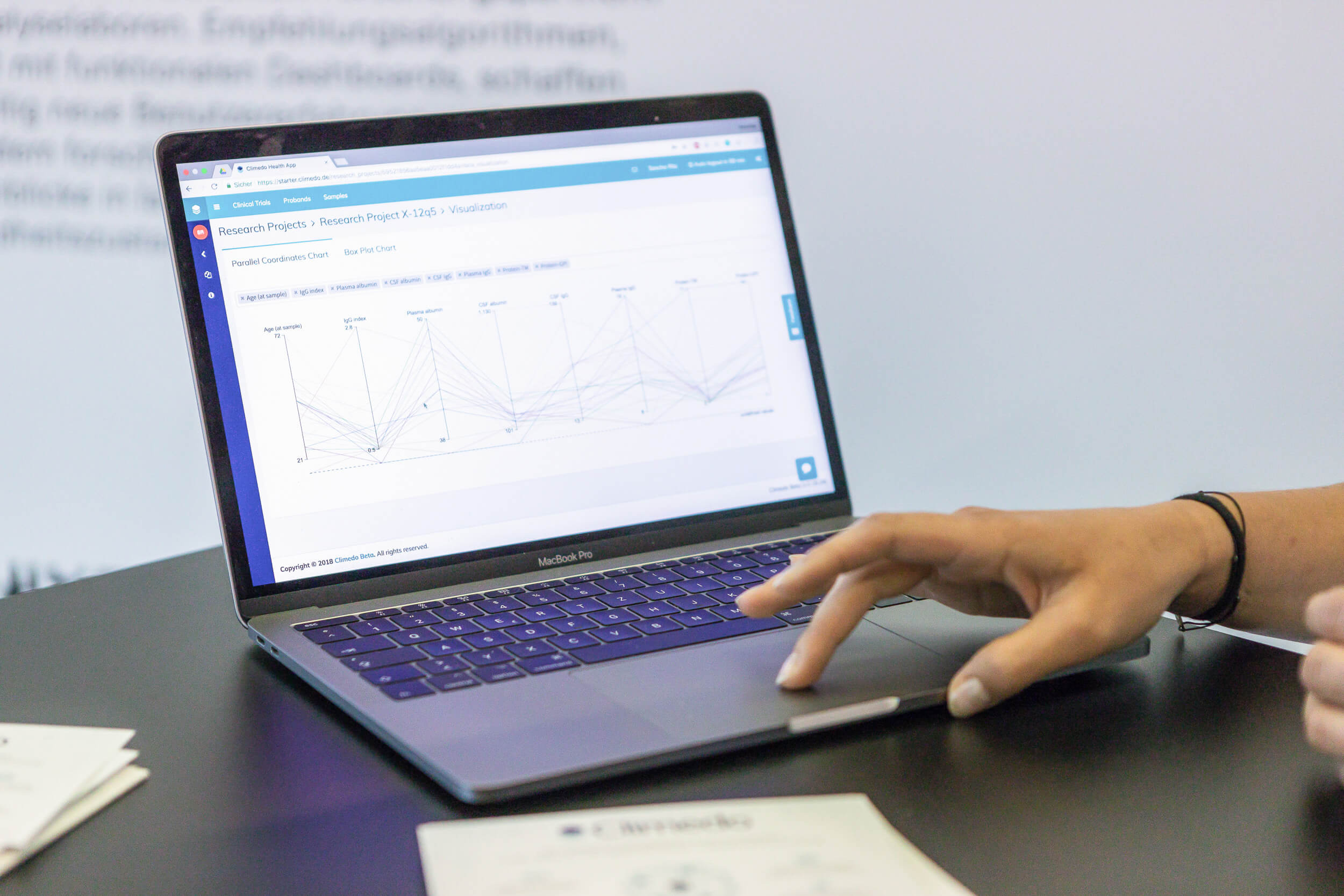 Climedo unterstützt mit seiner flexiblen und nutzerfreundlichen Softwarelösung Universitätskliniken bei der Sammlung und Analyse von klinischen Daten zur sicheren und effizienten Durchführung komplexer Behandlungsprozesse im Rahmen klinischer Studien. Die behandelnden Ärzte werden Schritt für Schritt durch einen jeweils individuell zusammengestellten Behandlungsprozess geführt und erheben alle relevanten Daten. Neben einer internen Prozessoptimierung ermöglicht Climedo seinen Kunden die direkte Kollaboration mit relevanten Forschungspartnern und Analyselaboren. Empfehlungsalgorithmen, gepaart mit funktionalen Dashboards, schaffen eine völlig neue Benutzererfahrung und ermöglichen dem forschenden Arzt detaillierte Echtzeit-Einblicke in laufende Studien sowie in den Gesundheitszustand der jeweiligen Patienten. Somit können beispielsweise neuartige genetische Individualtherapien im Rahmen von Studien unbedenklich über Climedo durchgeführt werden.