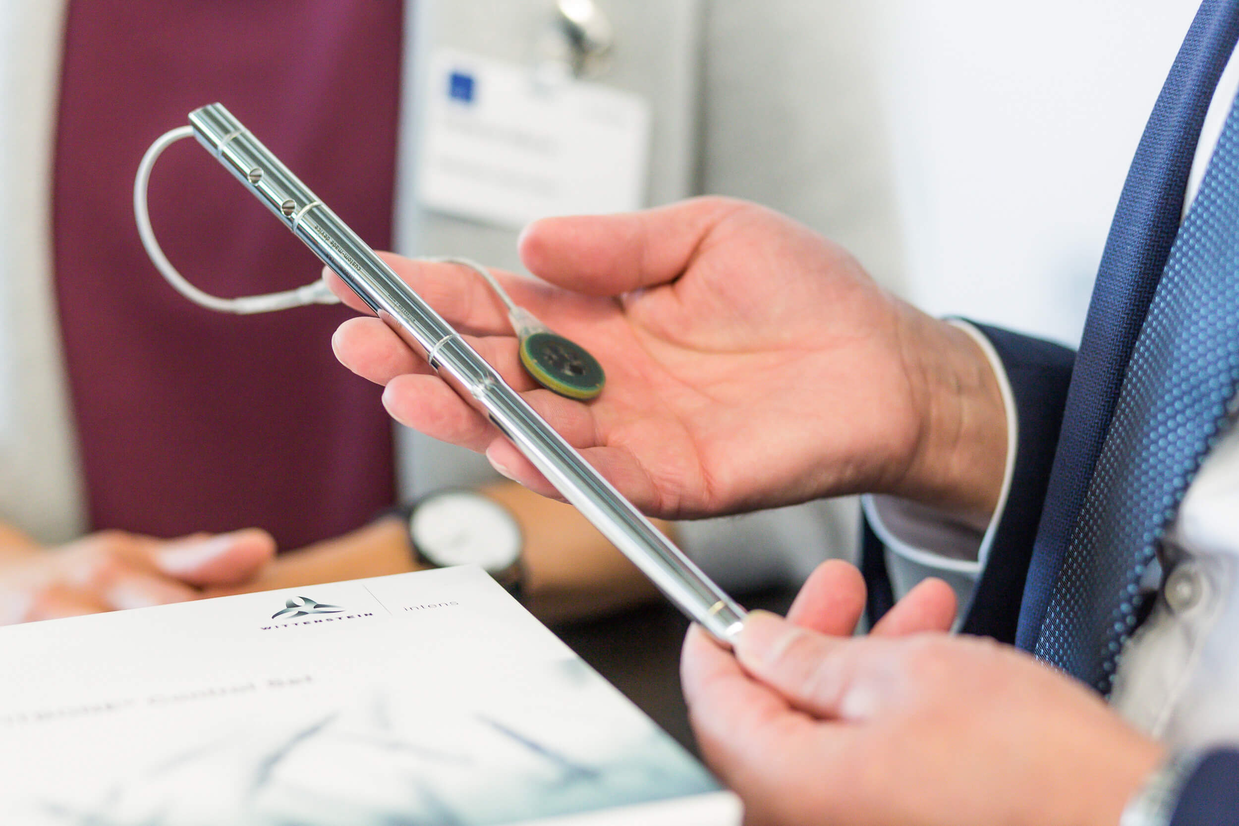 Der vollimplantierbare intramedulläre Verlängerungsmarknagel FITBONE® ist ein einzigartiges mechatronisches System zum Ausgleich von Beinlängendifferenzen sowie zur gleichzeitigen Korrektur von Fehlstellungen. Durch einen minimalinvasiven chirurgischen Eingriff wird der Verlängerungsmarknagel in den Markraum des Knochens implantiert. In Verbindung mit dem Verlängerungsmarknagel kommt eine drahtlose Energieübertragung zum Einsatz. Zur Aktivierung der Verlängerung wird das System mittels eines kleinen und leichten Steuerungssets durch den Patienten selbstständig aktiviert. Hierzu wird ein externer Transmitterkopf auf die Haut aufgelegt und Energie an den unter der Haut befindlichen Receiver berührungslos übertragen. Dieser sogenannte Receiver wird in das subkutane Fettgewebe direkt unter der Haut platziert, wodurch der induktive Energietransfer unabhängig von den Weichteilverhältnissen des Patienten sichergestellt ist.