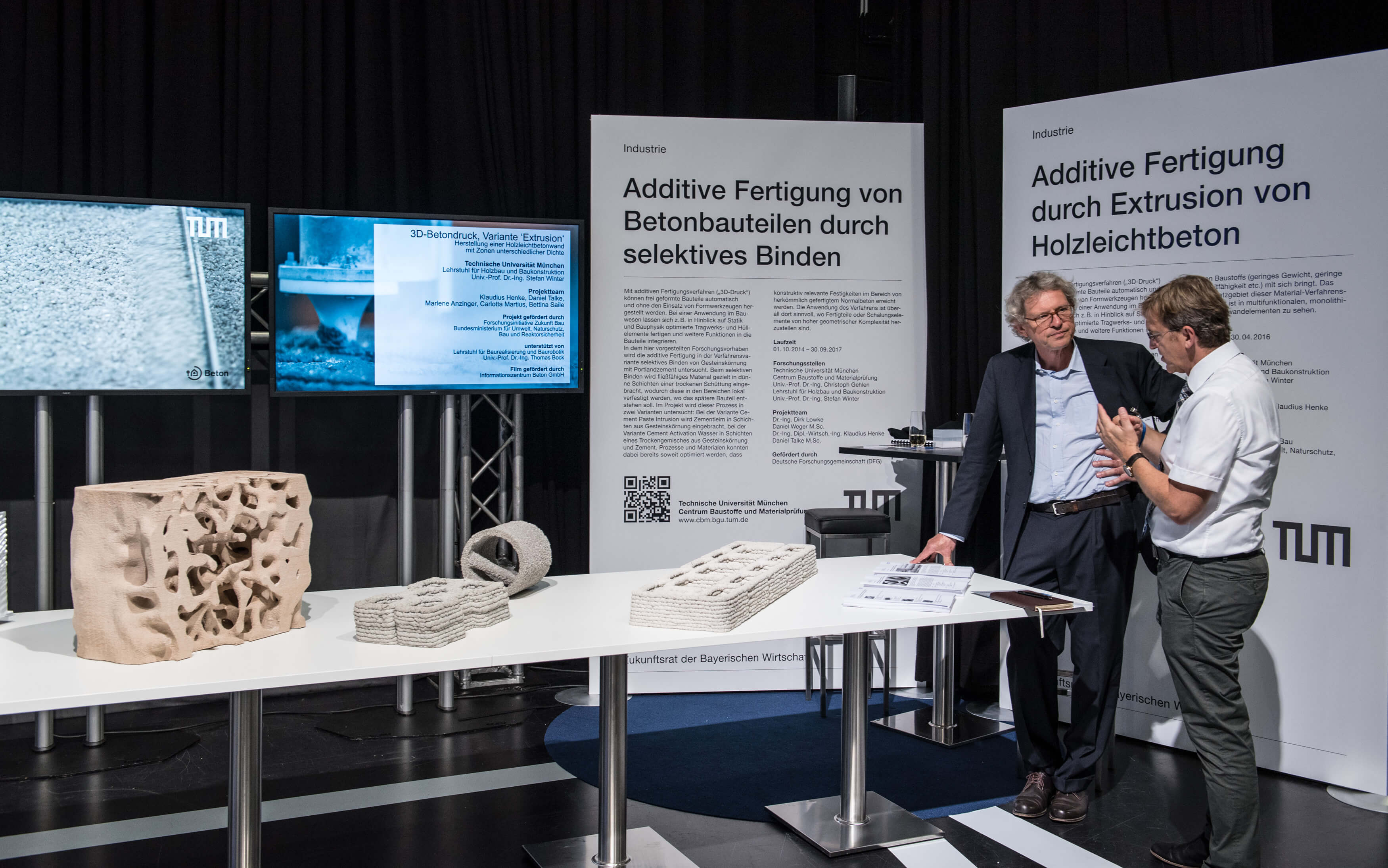 Prozesse und Materialen konnten dabei bereits soweit optimiert werden, dass konstruktiv relevante Festigkeiten im Bereich von herkömmlich gefertigtem Normalbeton erreicht werden. Die Anwendung des Verfahrens ist überall dort sinnvoll, wo Fertigteile oder Schalungselemente von hoher geometrischer Komplexität herzustellen sind.
