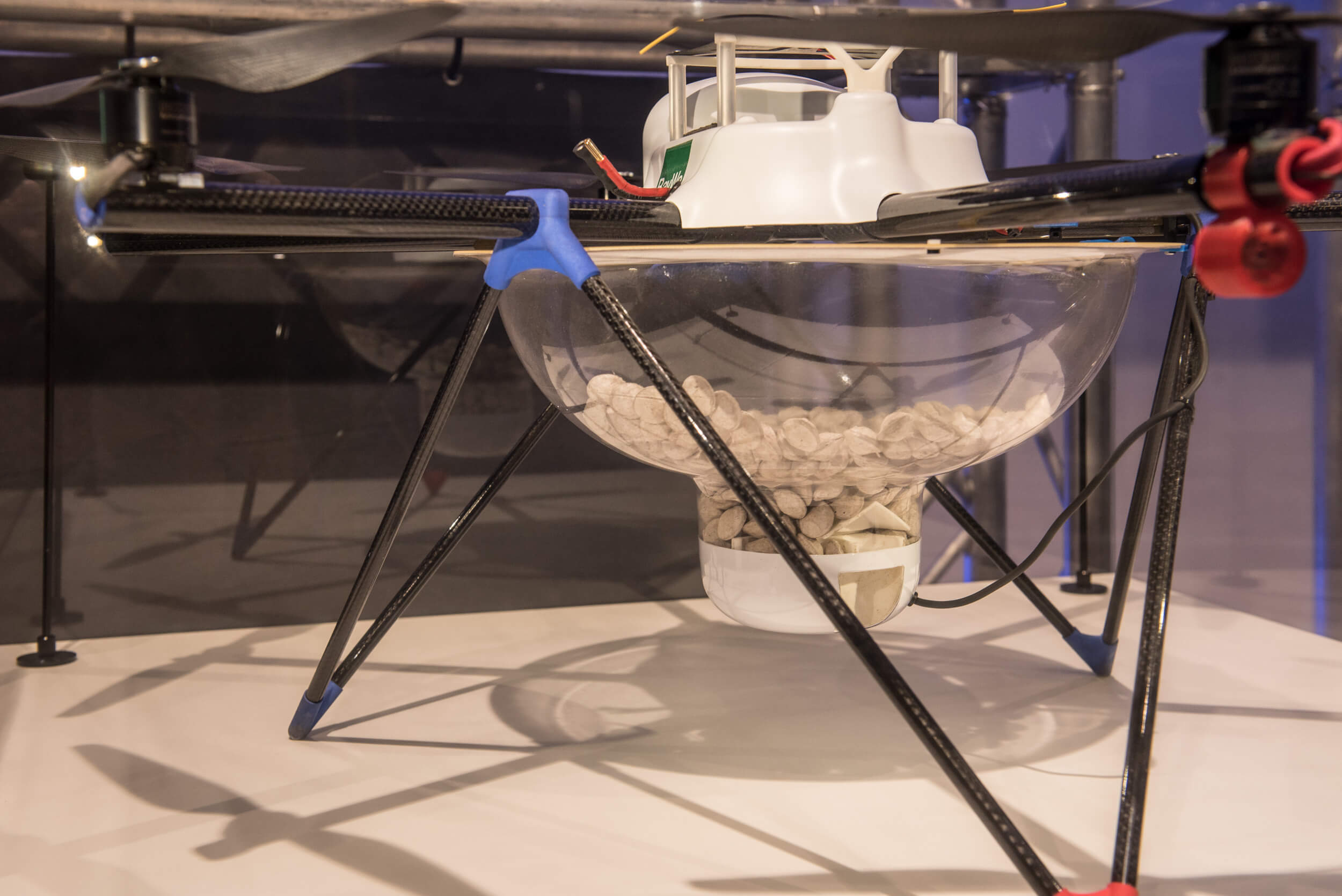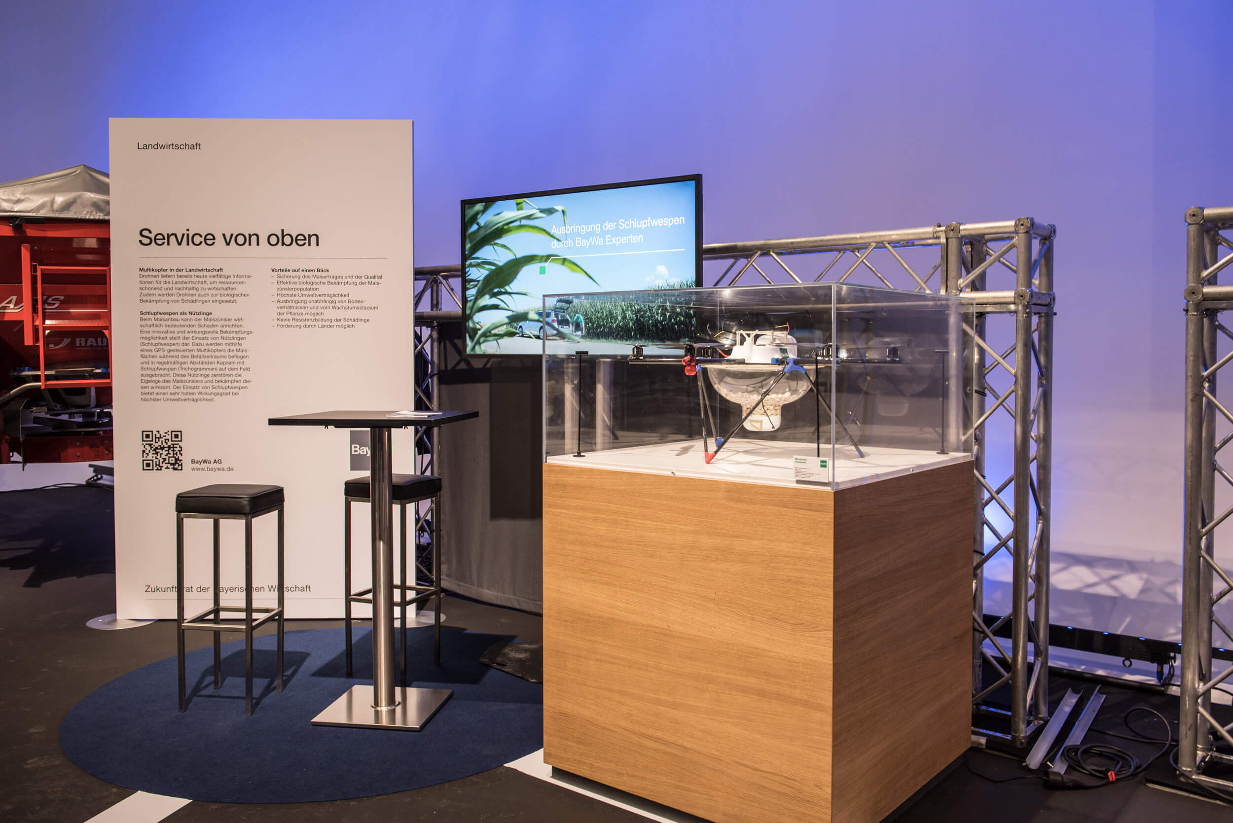 Beim Maisanbau kann der Maiszünsler wirtschaftlich bedeutenden Schaden anrichten. Eine innovative und wirkungsvolle Bekämpfungsmöglichkeit stellt der Einsatz von Nützlingen (Schlupfwespen) dar. Dazu werden mit Hilfe eines GPS-gesteuerten Multikopters die Maisflächen während des Befallzeitraums beflogen und in regelmäßigen Abständen Kapseln mit Schlupfwespen (Trichogrammen) auf dem Feld ausgebracht. Diese Nützlinge zerstören die Eigelege des Maiszünslers und bekämpfen diesen wirksam. Der Einsatz von Schlupfwespen bietet einen sehr hohen Wirkungsgrad bei höchster Umweltverträglichkeit.