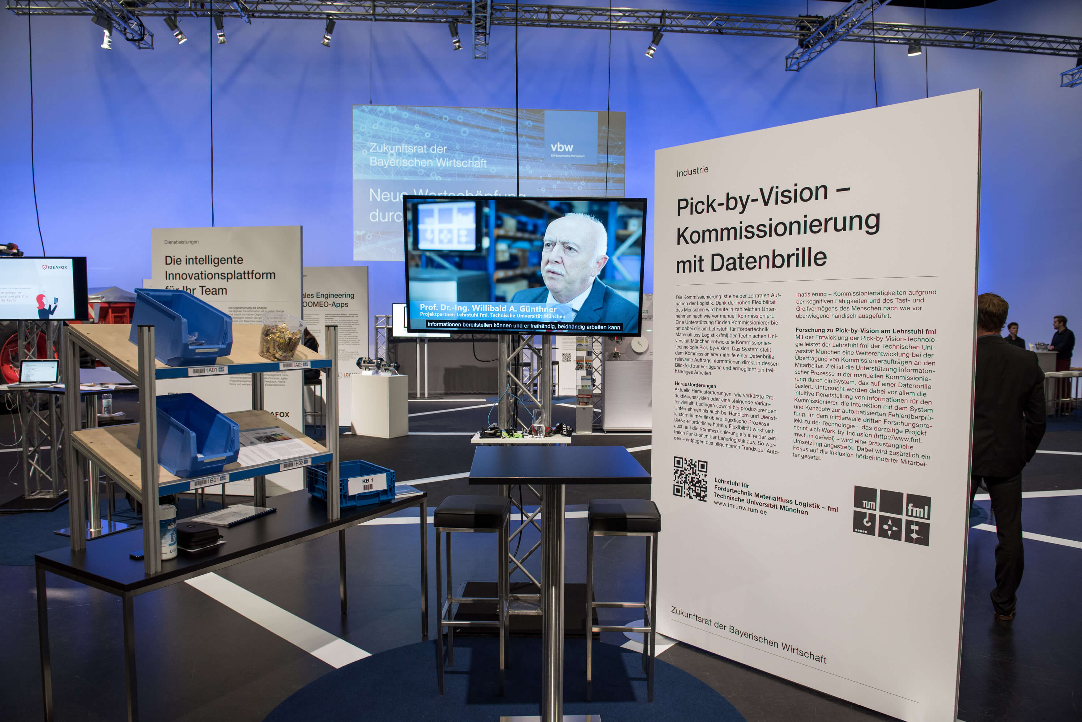Mit der Entwicklung der Pick-by-Vision-Technologie leistet der Lehrstuhl fml der Technischen Universität München eine Weiterentwicklung bei der Übertragung von Kommissionieraufträgen an den Mitarbeiter. Ziel ist die Unterstützung informatorischer Prozesse in der manuellen Kommissionierung durch ein System, das auf einer Datenbrille basiert. Untersucht werden dabei vor allem die intuitive Bereitstellung von Informationen für den Kommissionierer, die Interaktion mit dem System und Konzepte zur automatisierten Fehlerüberprüfung. Im dem mittlerweile dritten Forschungsprojekt zu der Technologie, das derzeitige Projekt nennt sich Work-by-Inclusion (http://www.fml.mw.tum.de/wbi), wird eine praxistaugliche Umsetzung angestrebt. Dabei wird zusätzlich ein Fokus auf die Inklusion hörbehinderter Mitarbeiter gesetzt.
