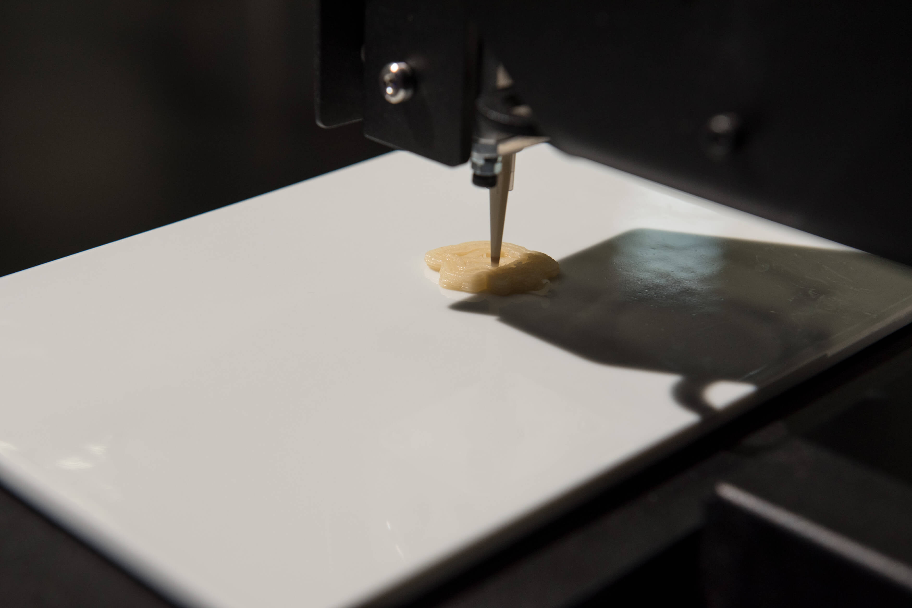 Der Bocusini® Pro arbeitet wie ein Spritzbeutel. Schicht für Schicht bringt er das Lebensmittel aus dem Bocusini® Refi ll automatisch und präzise in die gewünschte Form: