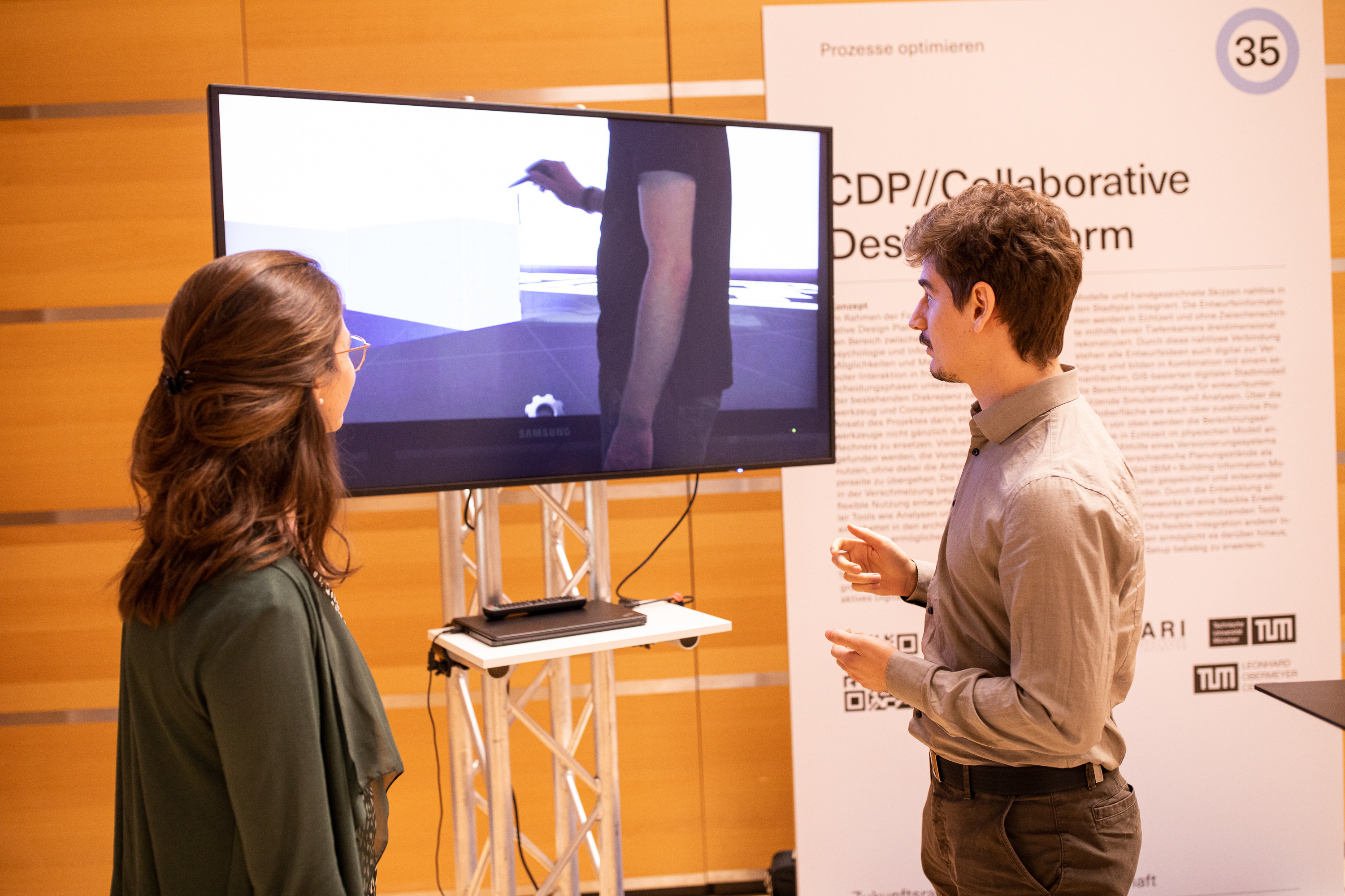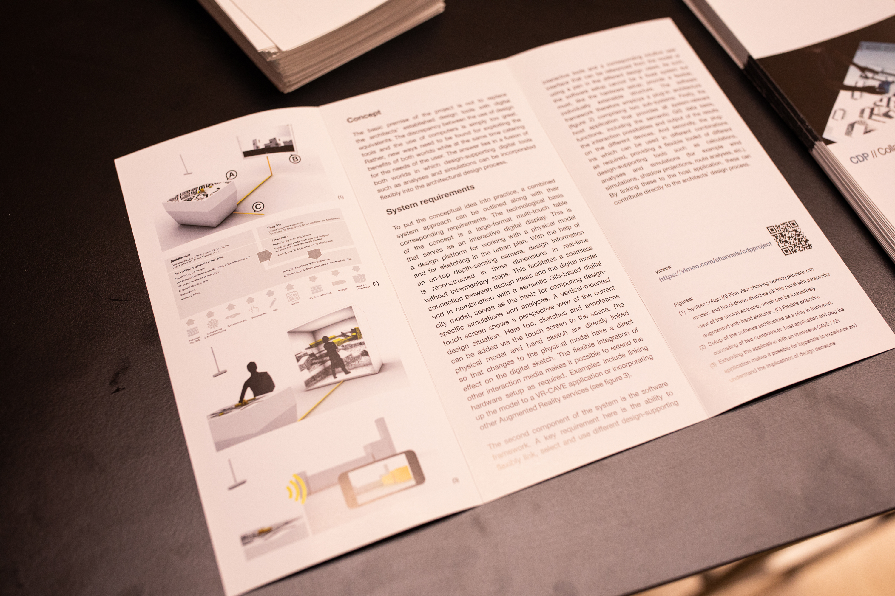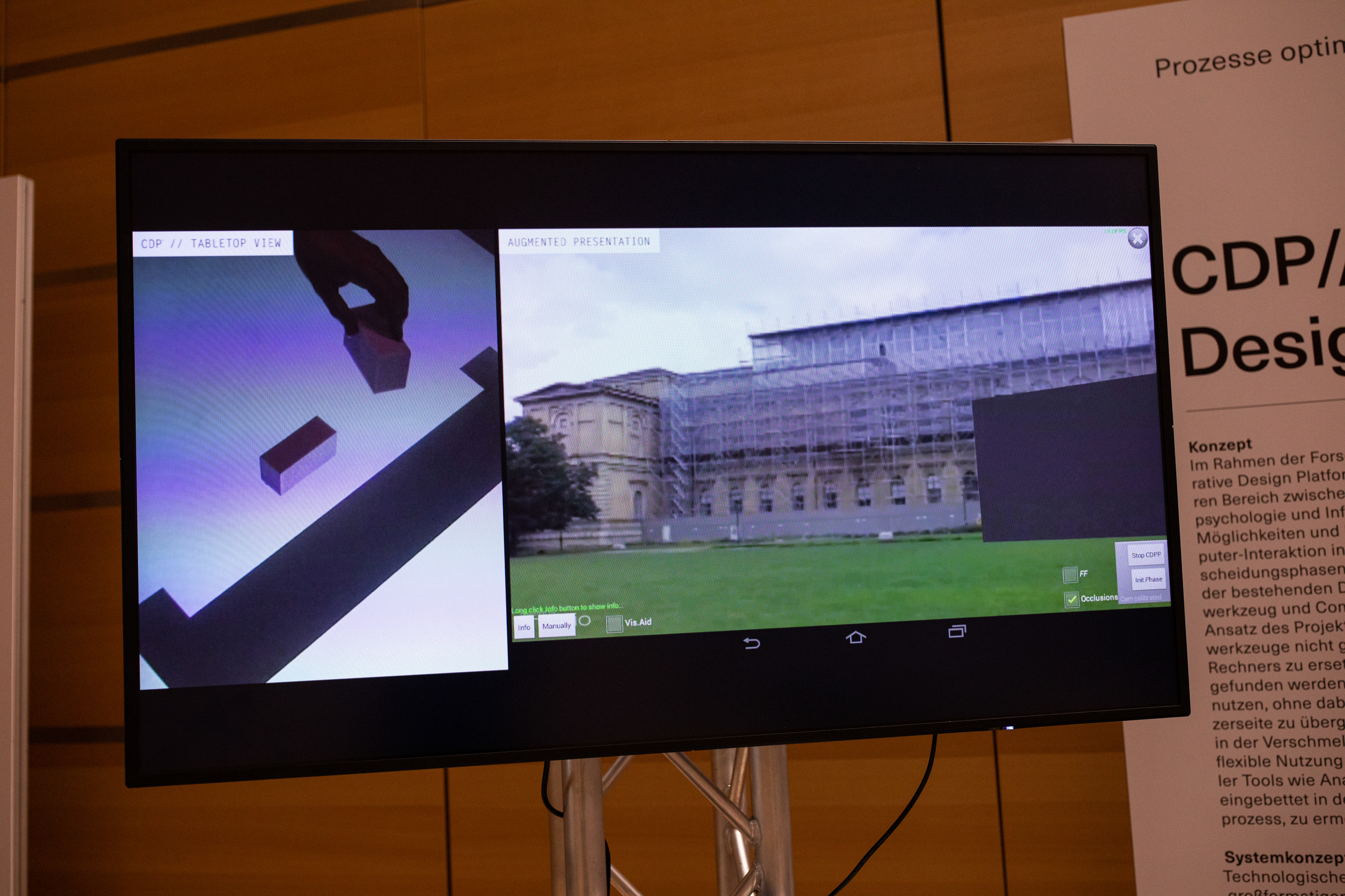 Im Rahmen der Forschungsgruppe CDP//Collaborative Design Platform werden im interdisziplinären Bereich zwischen Architektur, Wahrnehmungspsychologie und Informationswissenschaft neue Möglichkeiten und Methoden der Mensch-Computer-Interaktion in frühen Planungs- und Entscheidungsphasen untersucht. Ausgehend von der bestehenden Diskrepanz zwischen Entwurfs-werkzeug und Computerbedienung besteht der Ansatz des Projektes darin, etablierte Entwurfswerkzeuge nicht gänzlich durch den Einsatz des Rechners zu ersetzen. Vielmehr müssen Wege gefunden werden, die Vorteile beider Welten zu nutzen, ohne dabei die Anforderungen auf Nutzerseite zu übergehen. Die Lösung liegt hierbei in der Verschmelzung beider Welten, um so eine flexible Nutzung entwurfsunterstützender digitaler Tools wie Analysen und Simulationen, direkt eingebettet in den architektonischen Entwurfsprozess, zu ermöglichen.
