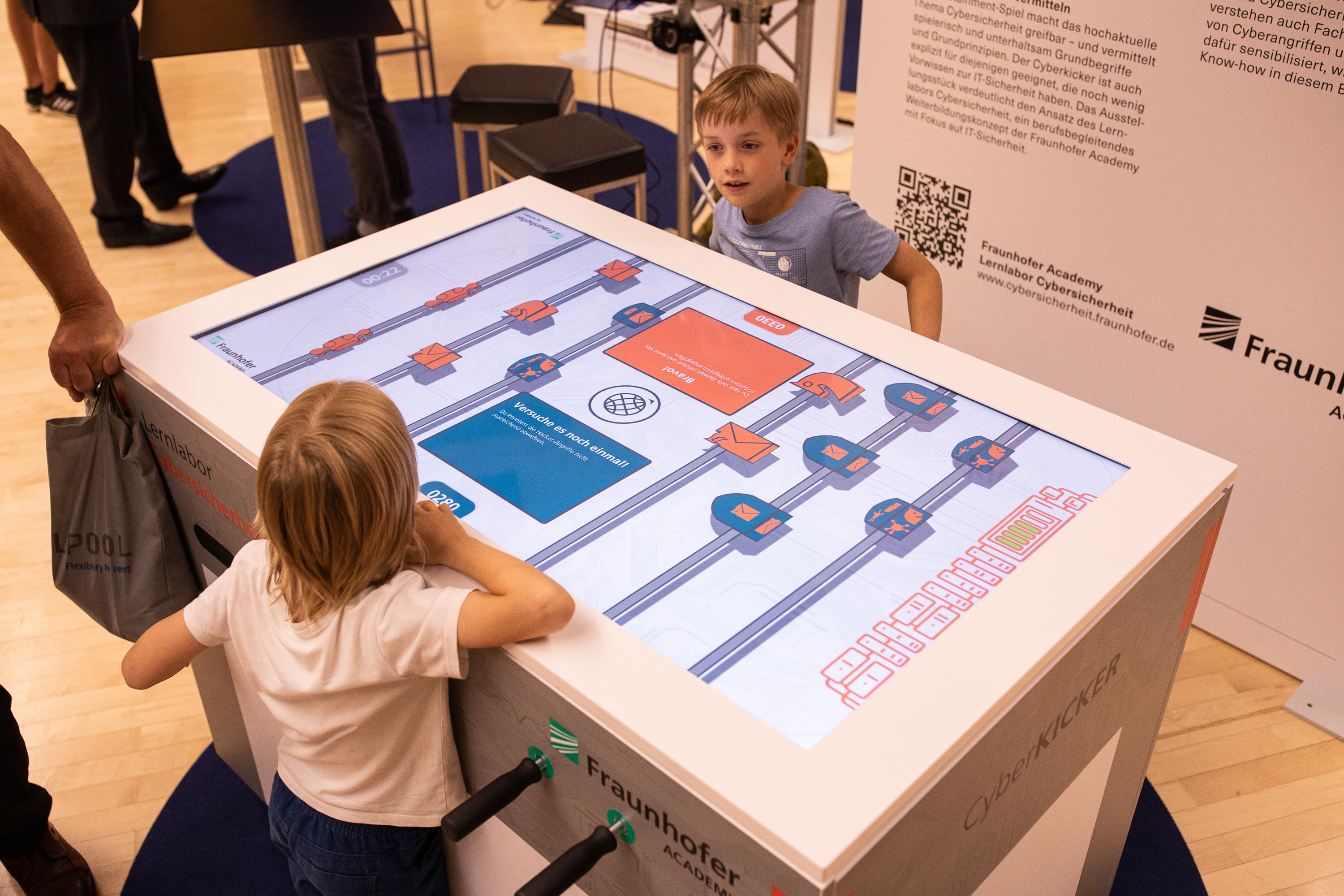 Das Infotainment-Spiel macht das hochaktuelle Thema Cybersicherheit greifbar – und vermittelt spielerisch und unterhaltsam Grundbegriffe und Grundprinzipien. Der Cyberkicker ist auch explizit für diejenigen geeignet, die noch wenig Vorwissen zur IT-Sicherheit haben. Der Kicker verdeutlicht den Ansatz des Lernlabors Cybersicherheit, ein berufsbegleitendes Weiterbildungskonzept der Fraunhofer Academy mit Fokus auf IT-Sicherheit.