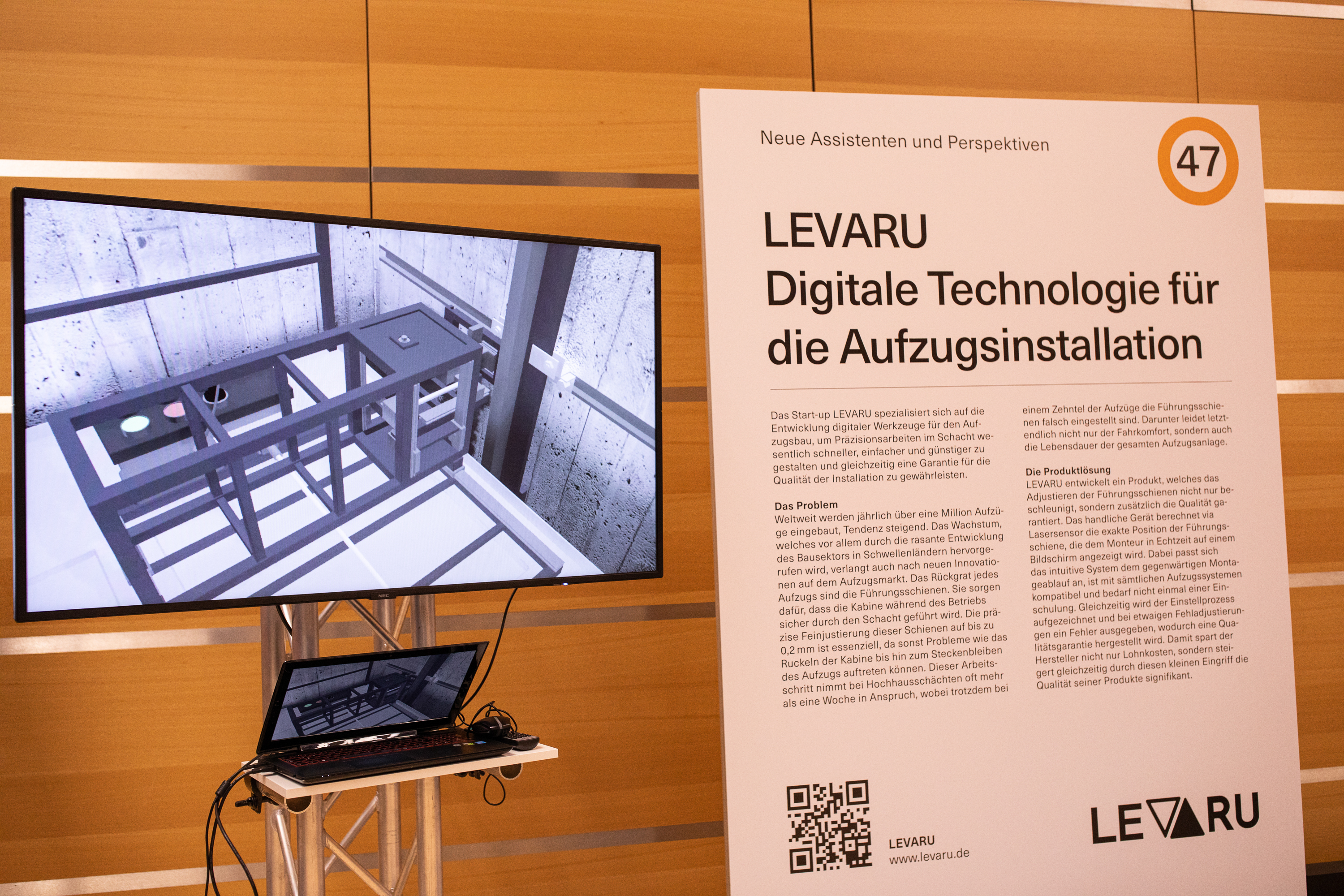 Das Start-up LEVARU spezialisiert sich auf die Entwicklung digitaler Werkzeuge für den Aufzugsbau, um Präzisionsarbeiten im Schacht wesentlich schneller, einfacher und günstiger zu gestalten und gleichzeitig eine Garantie für die Qualität der Installation zu gewährleisten.