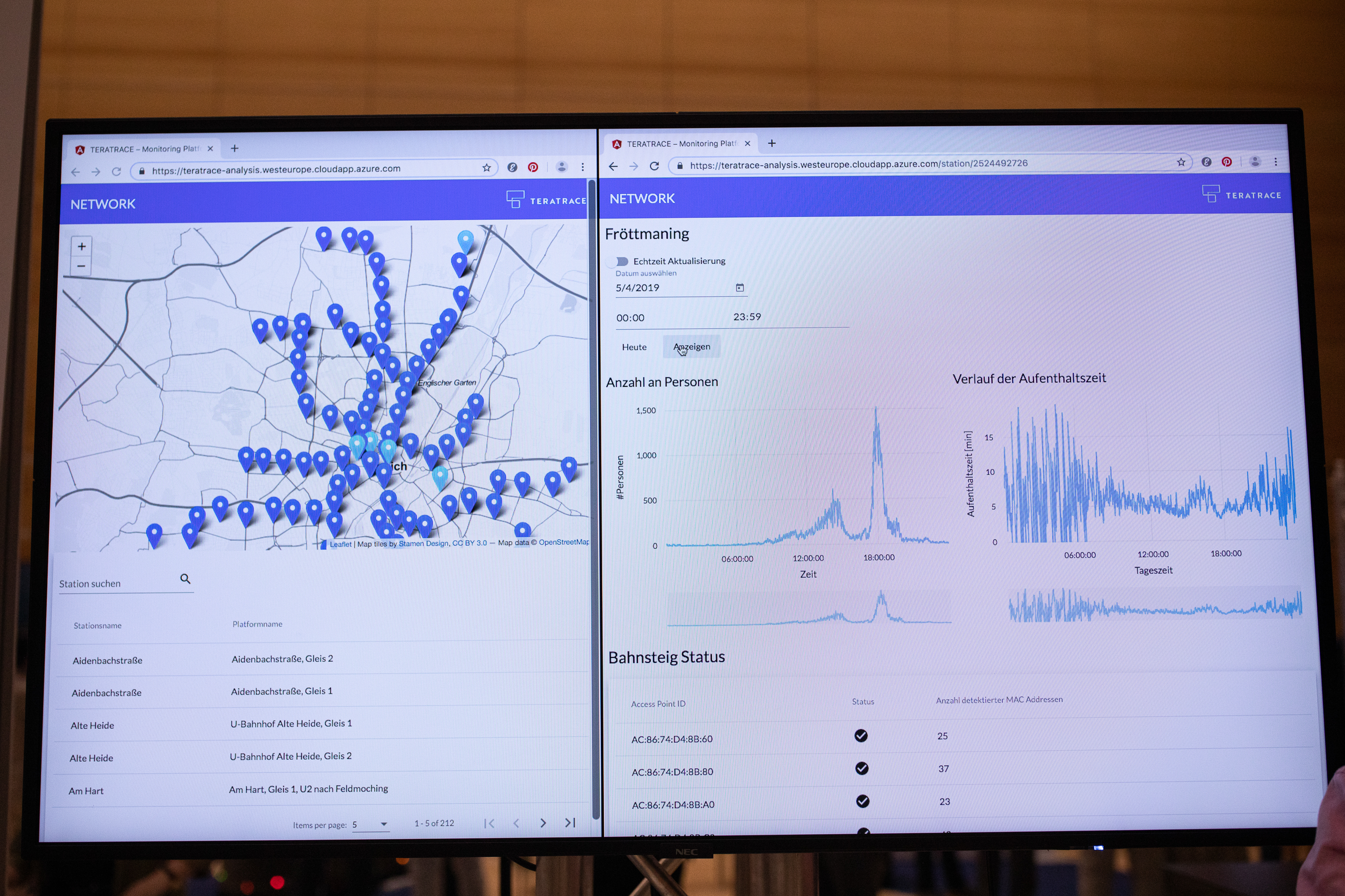Teratrace wertet mithilfe von KI Informationen aus unterschiedlichen Datenquellen aus, um eine genaue Messung der Fahrgastströme zu ermöglichen. Dazu werden Sensordaten gesammelt und mit externen Datenquellen wie dem Wetterdienst oder dem städtischen Veranstaltungskalender kombiniert. So kann nicht nur die aktuelle Auslastung beobachtet, sondern es können auch rechtzeitig Engpässe im Netzwerk vorhergesagt werden.