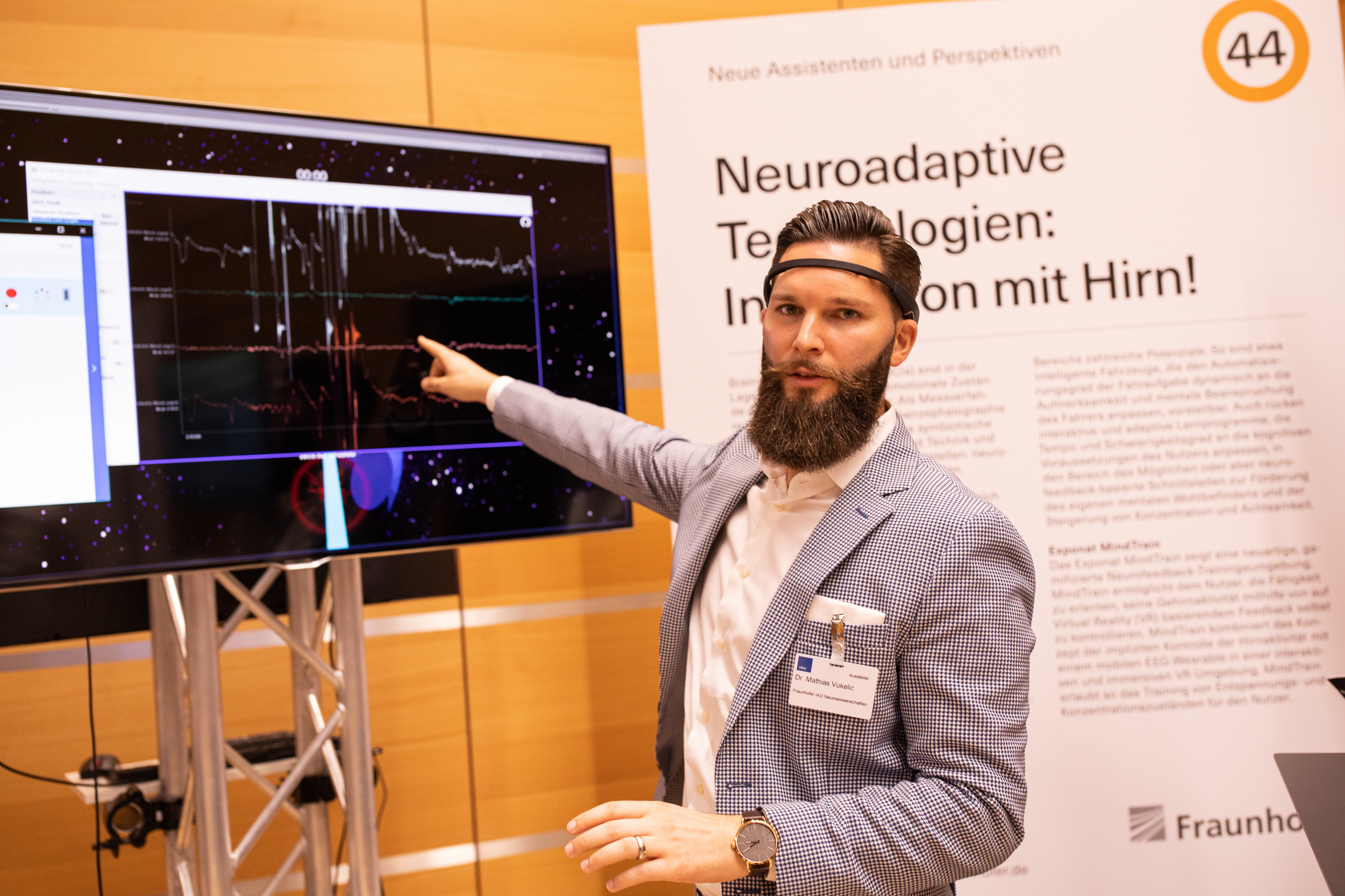 Brain-Computer-Interfaces (BCIs) sind in der Lage, implizit kognitive und emotionale Zustände des Nutzers zu beurteilen. Als Messverfahren bietet sich etwa die Elektroenzephalographie (EEG) an. BCIs ermöglichen eine symbiotische Interaktion zwischen Mensch und Technik und völlig neue technologische Schnittstellen: neuroadaptive Mensch-Technik-Schnittstellen.