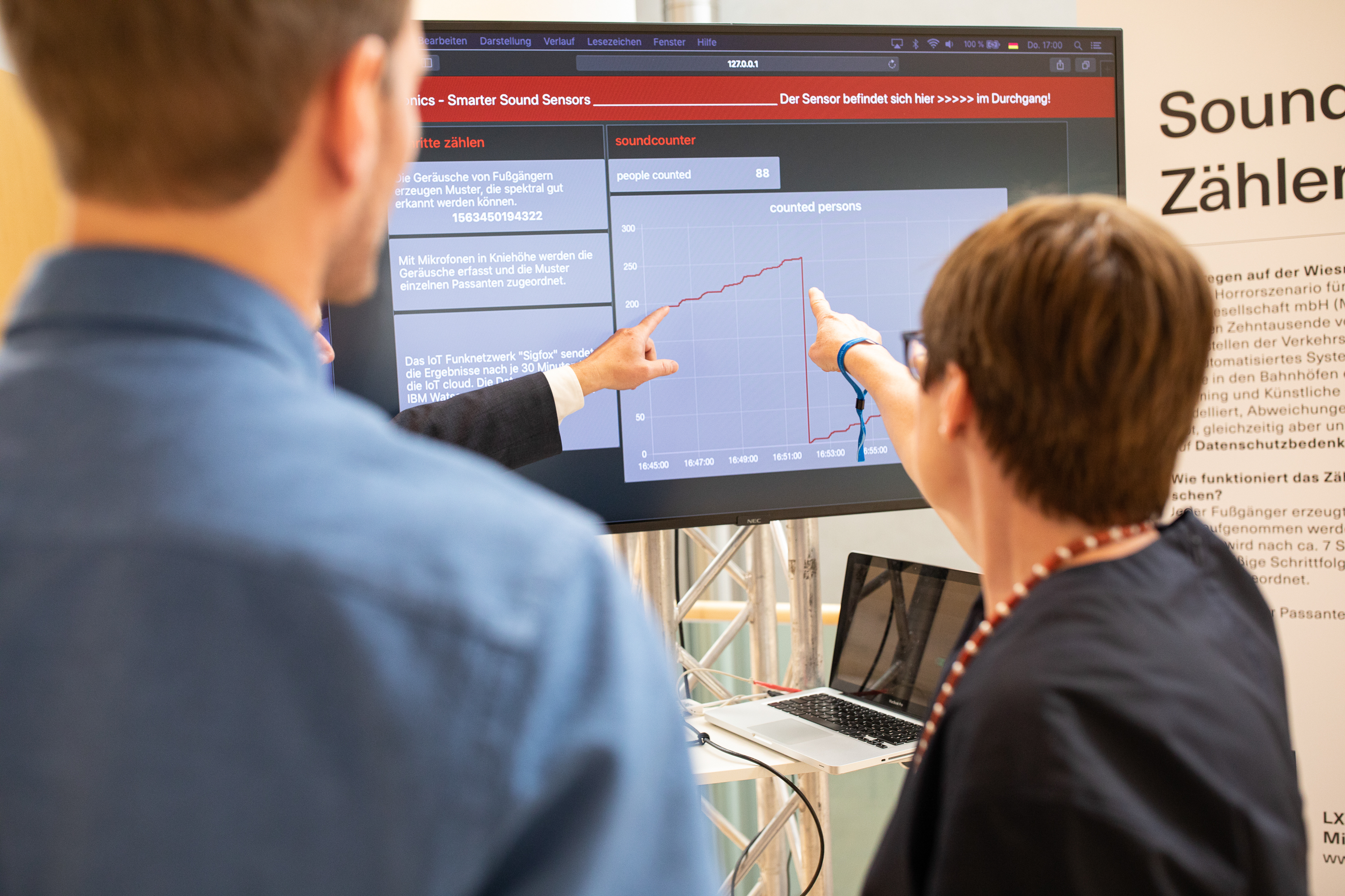 Jeder Fußgänger erzeugt Geräusche, die bodennah aufgenommen werden. Diese Geräuschkulisse wird von einem smarten SoundCounter-Sensor erfasst und nach ca. 7 Sekunden ausgewertet – gleichmäßige Schrittfolgen werden je einer Person zugeordnet. Die Anzahl der Passanten wird alle 30 Minuten übermittelt.