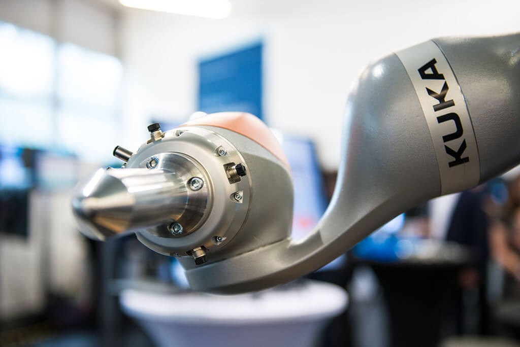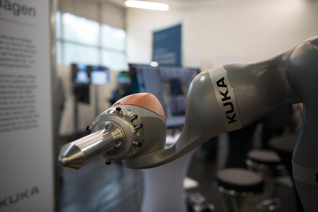 Auf dem Kongress des Zukunftsrats der Bayerischen Wirtschaft am 08. Juli 2015 präsentierte die KUKA Systems GmbH auf der Plattform „Neue Produktion / Neue Arbeitswelt“ den Leichtbauroboter (LBR) iiwa.